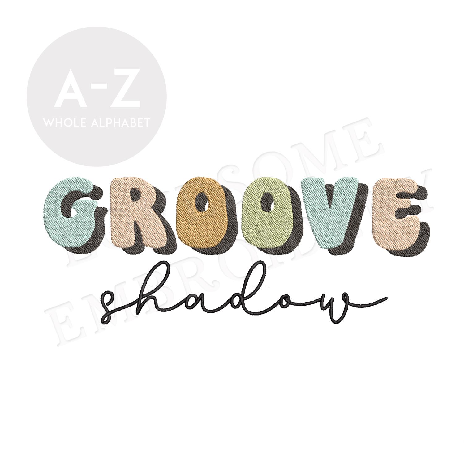 Groove Shadow Font 2inch Retro Font A-Z Machine Embroidery Font Digital Download | Lovesome Design