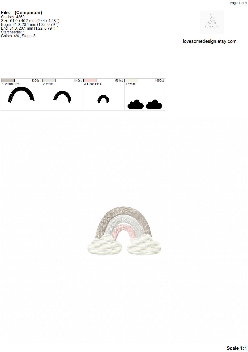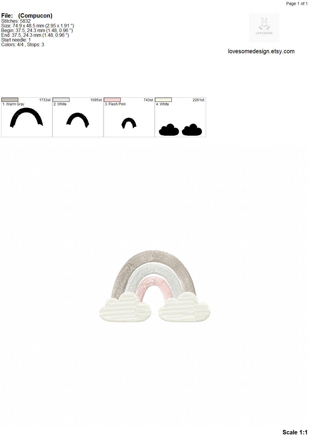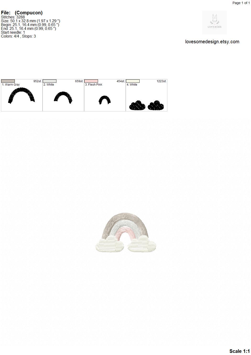 This listing includes one cute rainbow design for machine embroidery in three mini sizes, each appr. in 2inch, 2.5inch and 3inch size for embroidery hoops in different sizes.