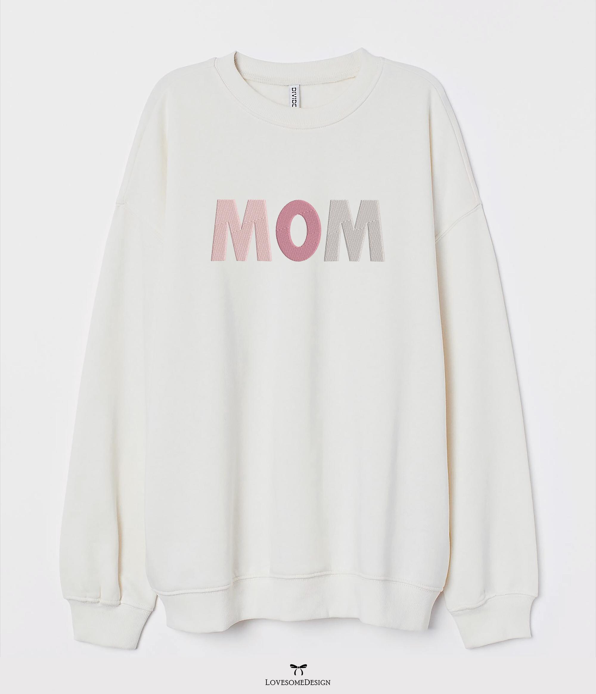 Mom Sweatshirt Three Sizes Embroidery Design, Modern Mom Tshirt Design Fill Stitch Embroidery File Digital Download | Lovesome Design