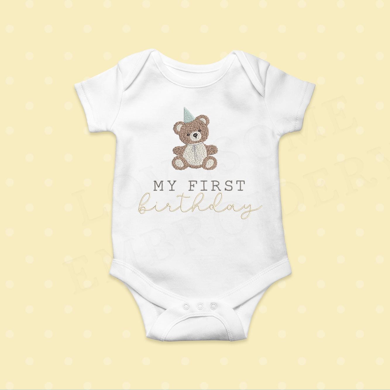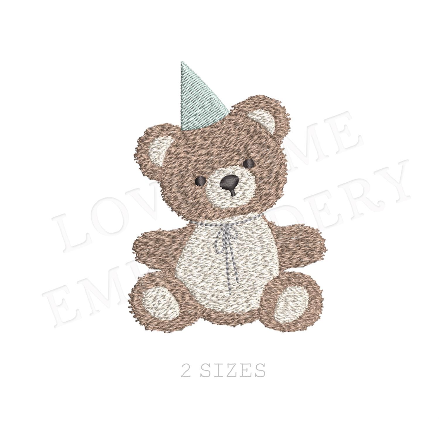 Party Hat Plush Teddy Mini Two Sizes Machine Embroidery Design, Lovely Teddy Bear Baby Birthday Embroidery File | Lovesome Design