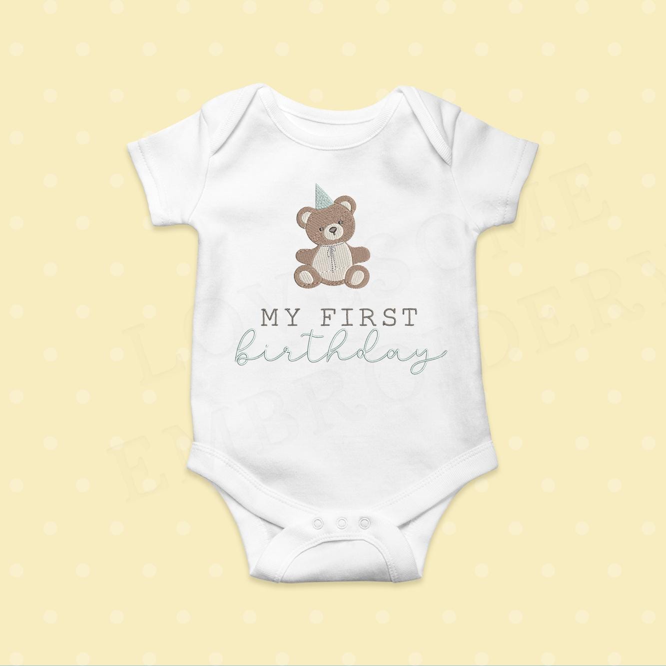 Party Hat Teddy Mini Two Sizes Machine Embroidery Design, Lovely Teddy Bear Multiple Size Baby Birthday Embroidery File | Lovesome Design