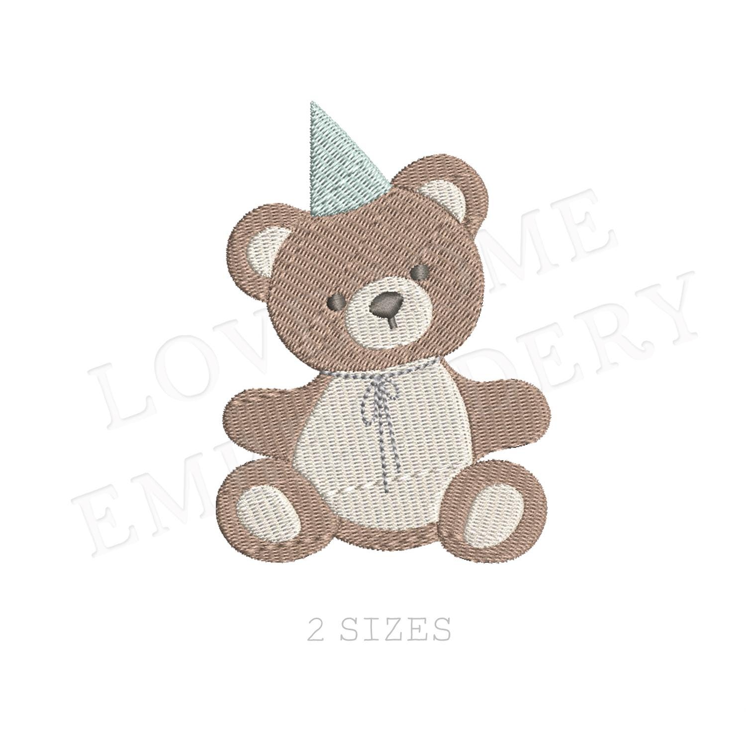 Party Hat Teddy Big Two Sizes Machine Embroidery Design, Lovely Teddy Bear Multiple Size Baby Birthday Embroidery File | Lovesome Design