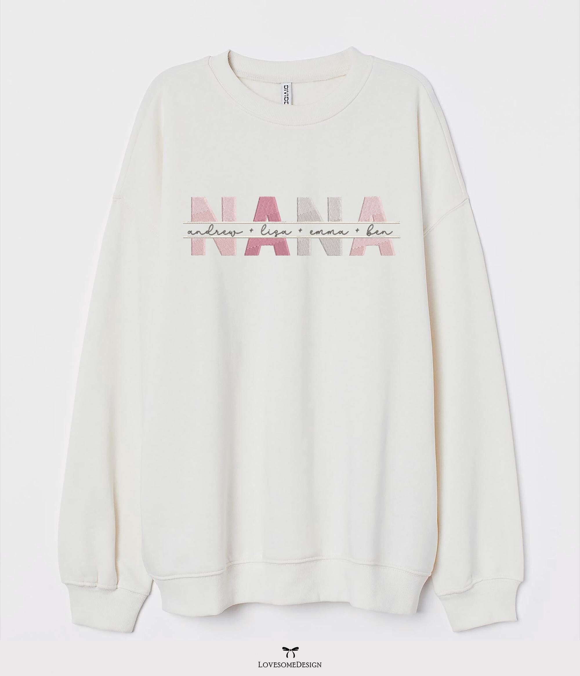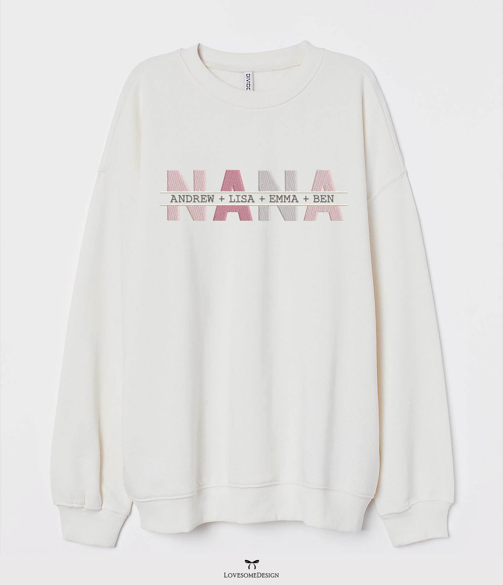 Nana Split Sweatshirt Two Sizes Embroidery Design, Split Design Nana Tshirt Design Fill Stitch Embroidery File | Lovesome Design