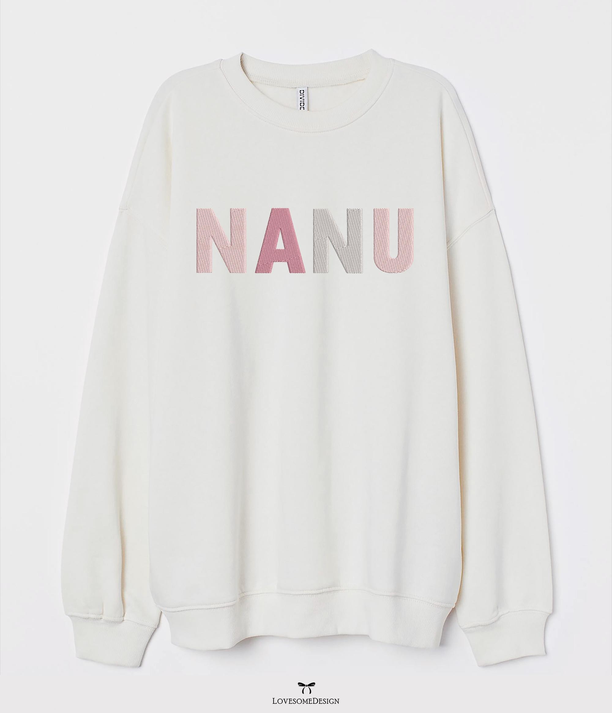 Nanu Sweatshirt Big Three Sizes Embroidery Design, Modern Nanu Tshirt Design Fill Stitch Embroidery File Digital Download | Lovesome Design