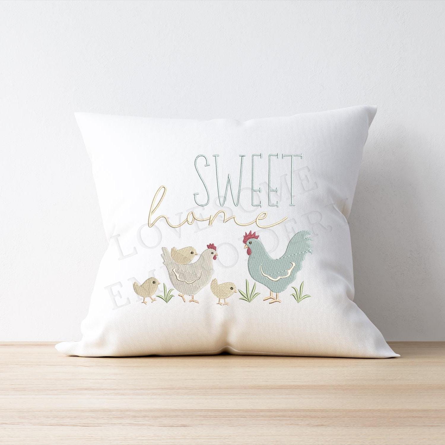 Cute Chicken Family 6inch Machine Embroidery Design, Lovely Hen Rooster and Three Chicks Spring Farmhouse Embroidery File | Lovesome Design