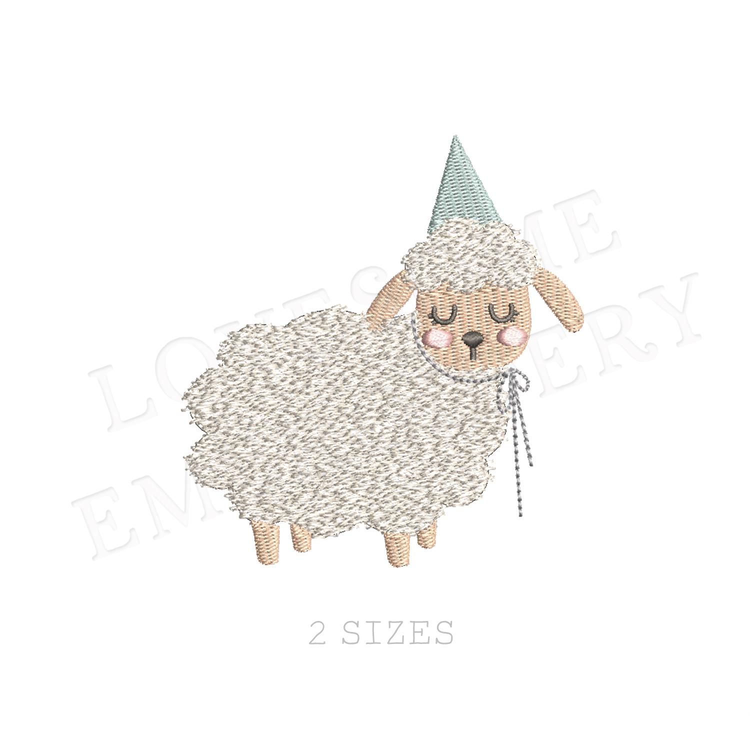 Party Hat Plush Lamb Two Sizes Machine Nursery Embroidery Design, Cute Little Birthday Lamb Baby Embroidery File | Lovesome Design