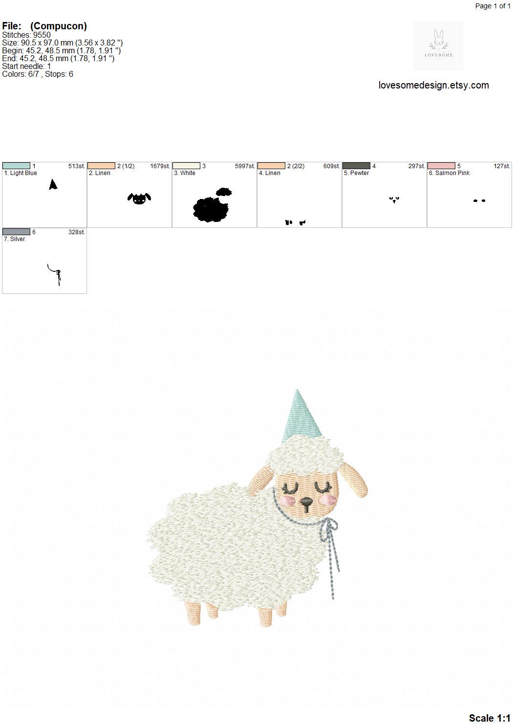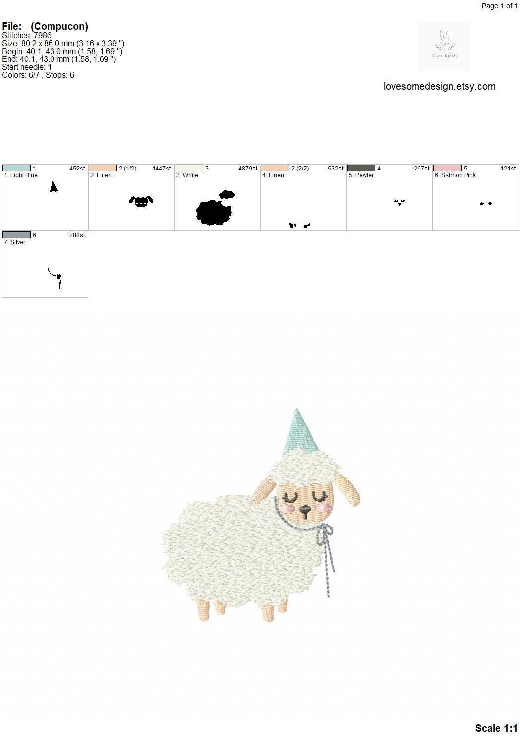 This listing includes one cute plush lamb design for machine embroidery in two small sizes, each appr. in 3.5inch and 4inch size for embroidery hoops in different sizes.
