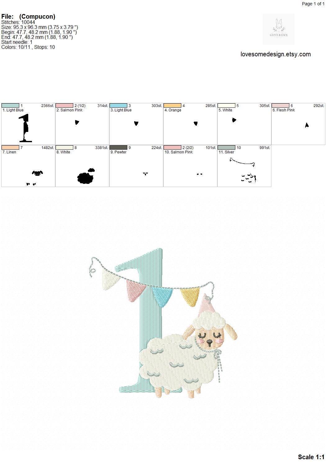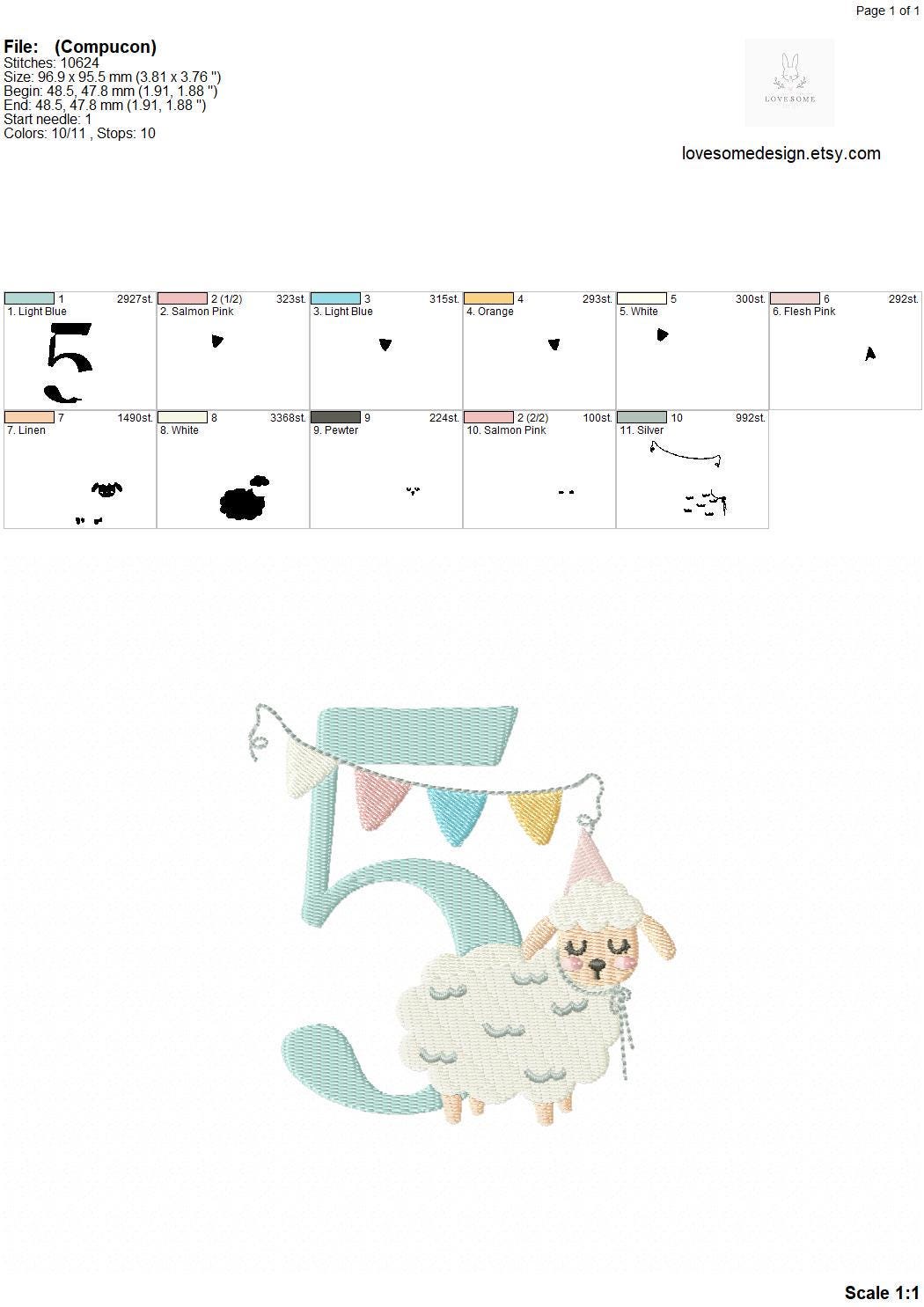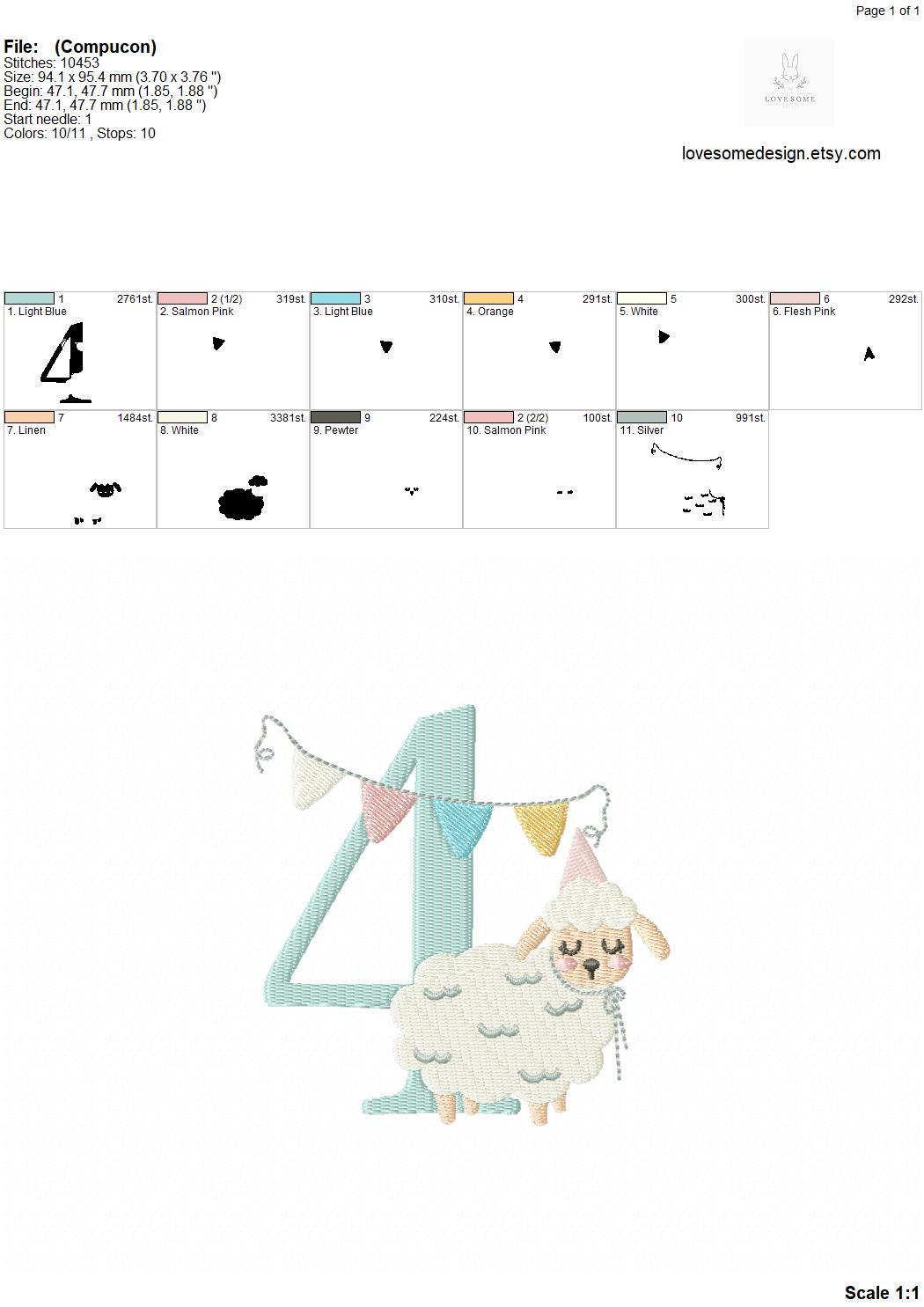 This listing features a machine embroidery numbers set which includes embroidery files of ten numbers (0-9) with a cute little birthday lamb with a party hat design in 4inch size for 4x4 hoops for machine embroidery. (For the whole set, pls see the listing images.)
