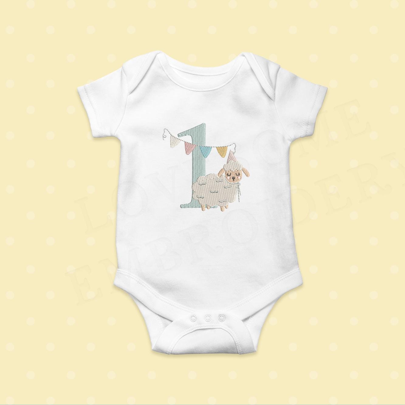 Party Hat Lamb Numbers 4inch 0-9 Baby Birthday Machine Embroidery Numbers Digital Download | Lovesome Design