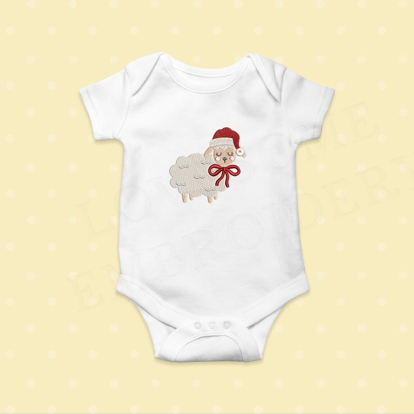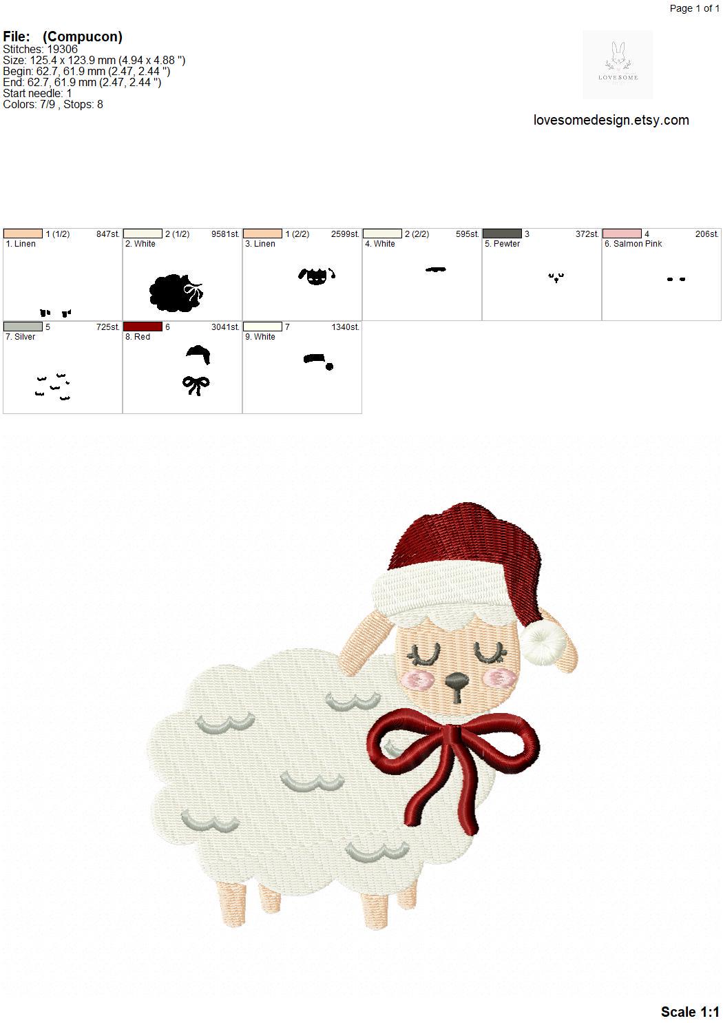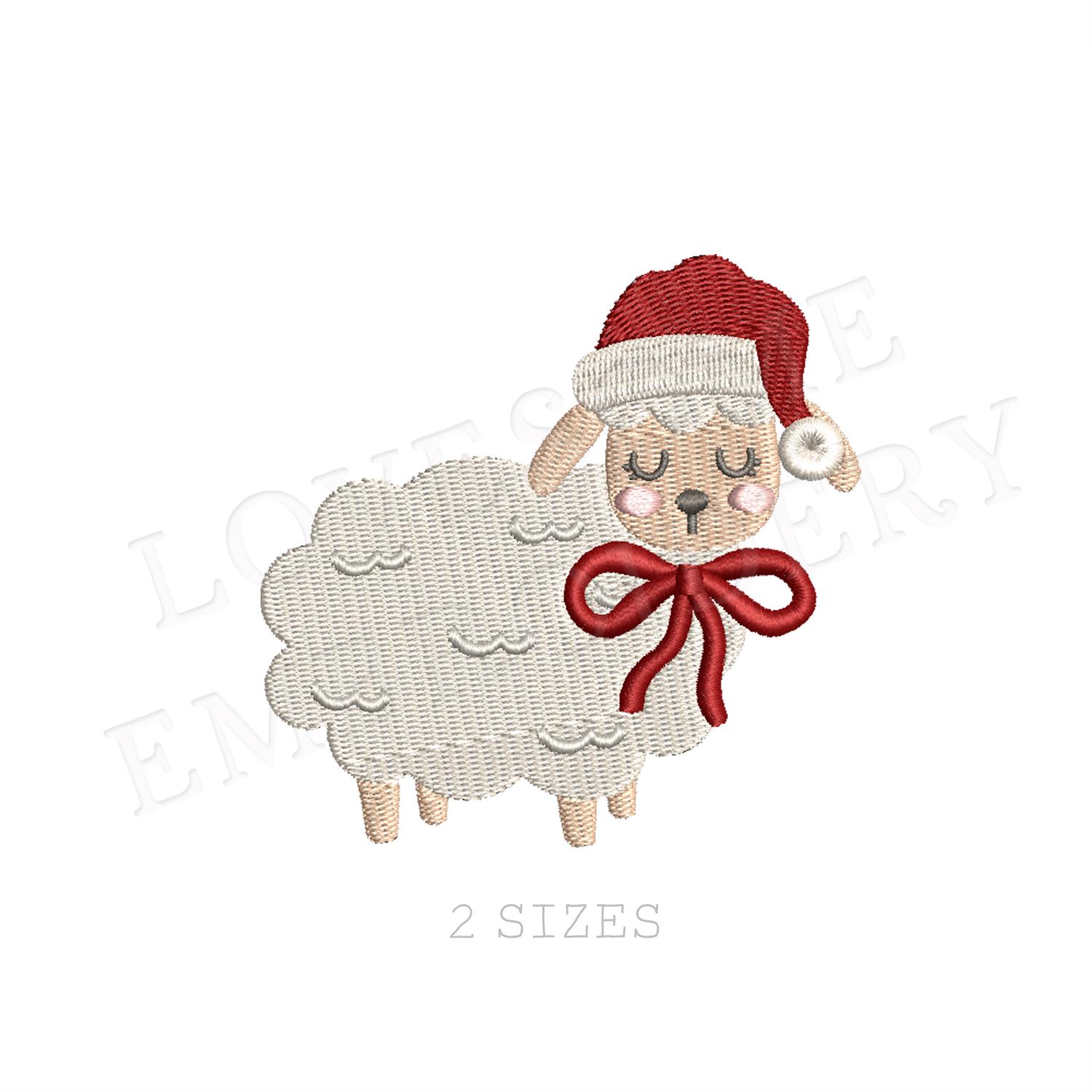 Santa Hat Lamb Two Big Sizes Machine Embroidery Design, Cute Little Lamb Christmas Baby Embroidery File | Lovesome Design