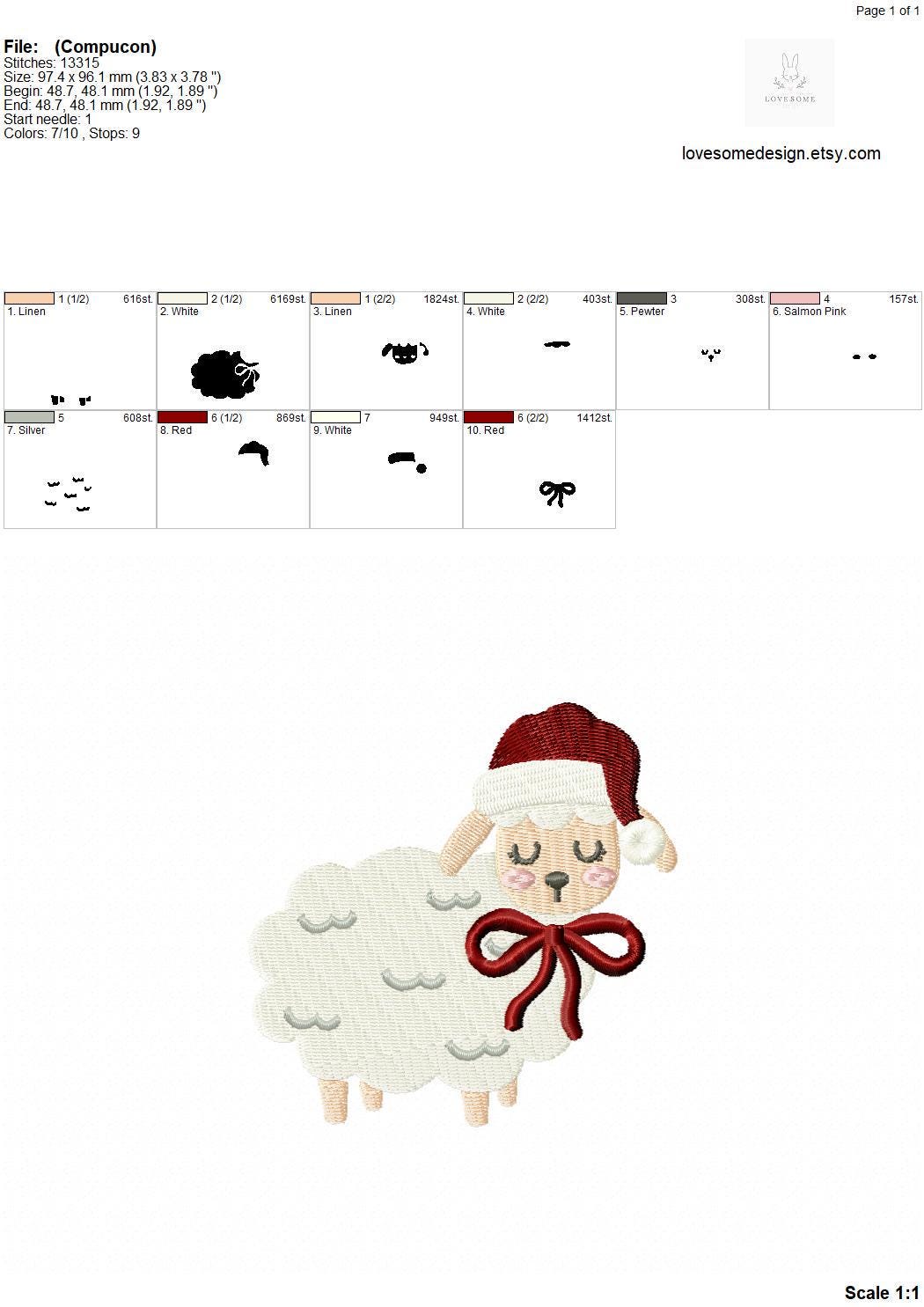 This listing includes one cute lamb with a santa hat and a red bow design for machine embroidery in two big sizes, each appr. in 4inch and 5inch size for embroidery hoops in different sizes.