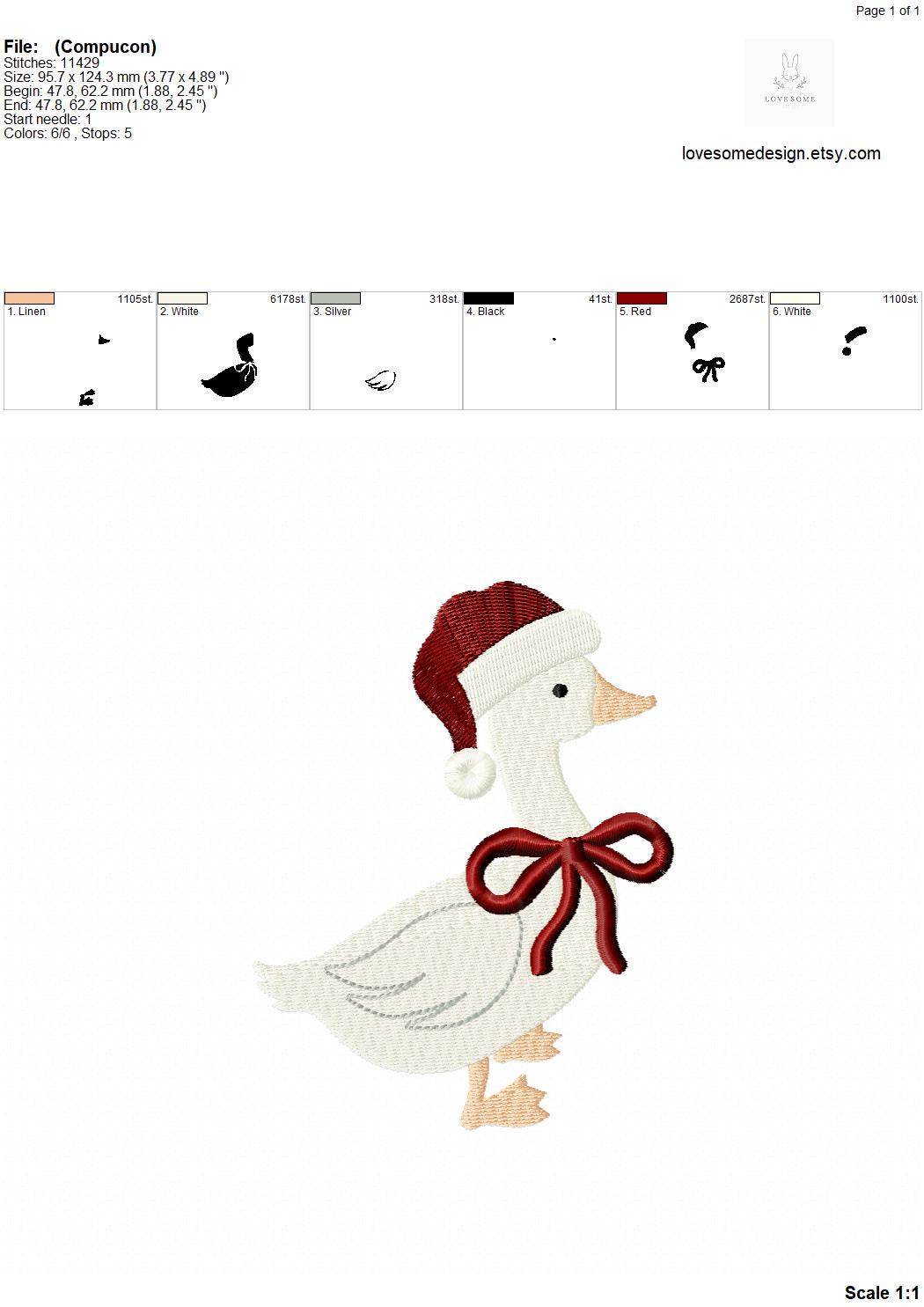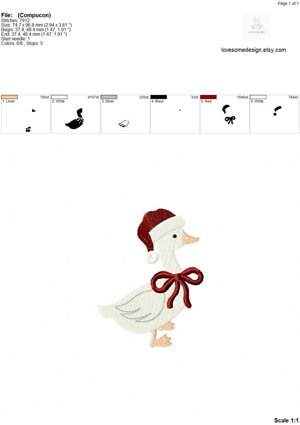 Santa Hat Silly Goose Two Big Sizes Machine Embroidery Design, Baby First Christmas Duck Multiple Size Embroidery File | Lovesome Design