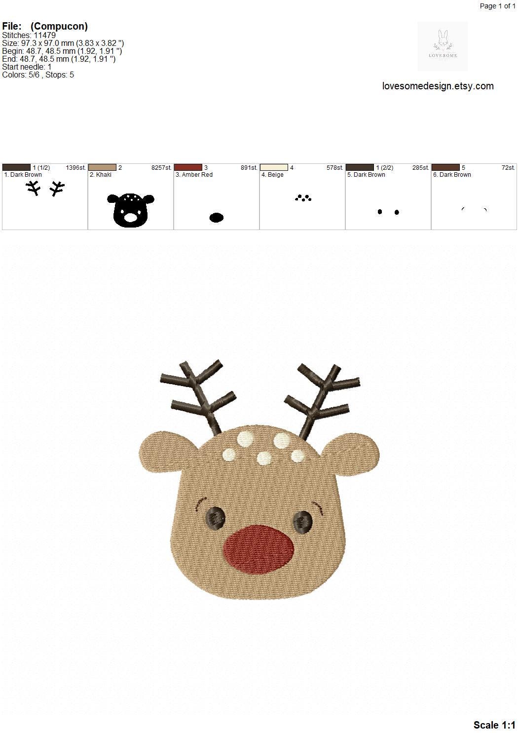 Cute Rudolph Deer 3.5inch 4inch Embroidery Design, Classical Christmas Embroidery, Cute Reindeer Machine Embroidery File | Lovesome Design