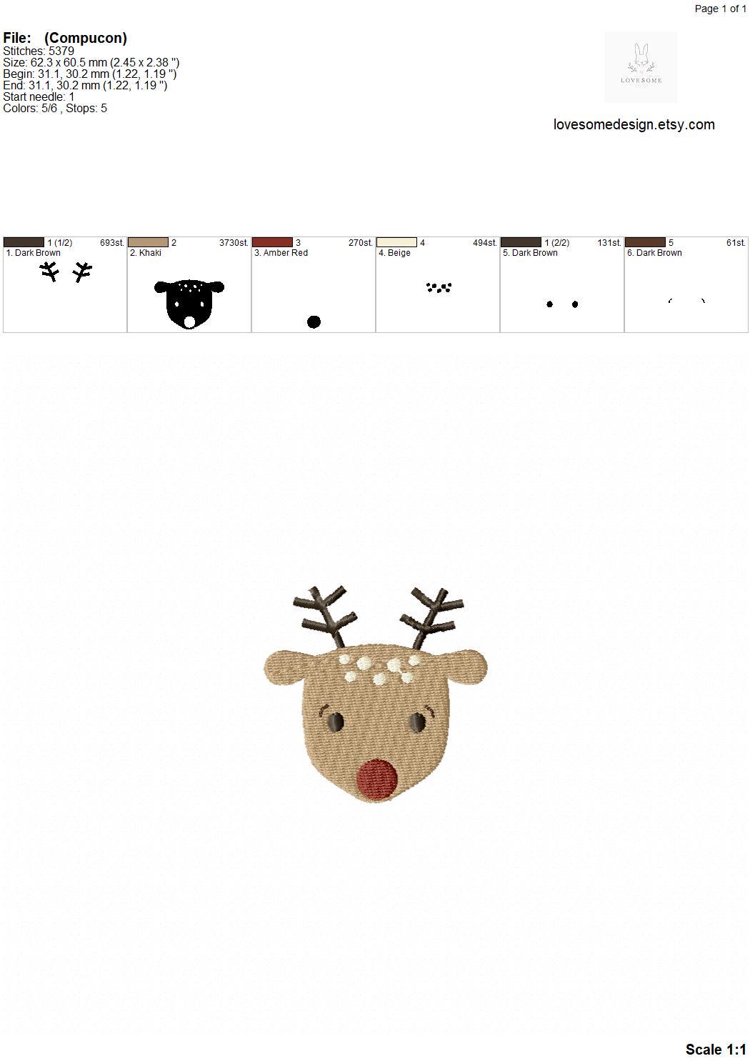 Cute Rudolph Deer 2.5inch 3inch Multisize Embroidery Design, Adorable Baby Reindeer Machine Embroidery File | Lovesome Design