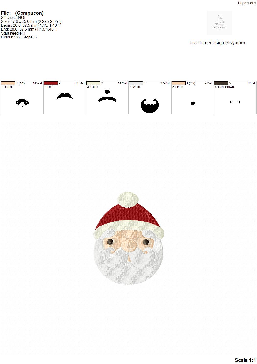 Cute Santa 2.5inch 3inch Multisize Embroidery Design, Cute Santa Claus Machine Embroidery File | Lovesome Design