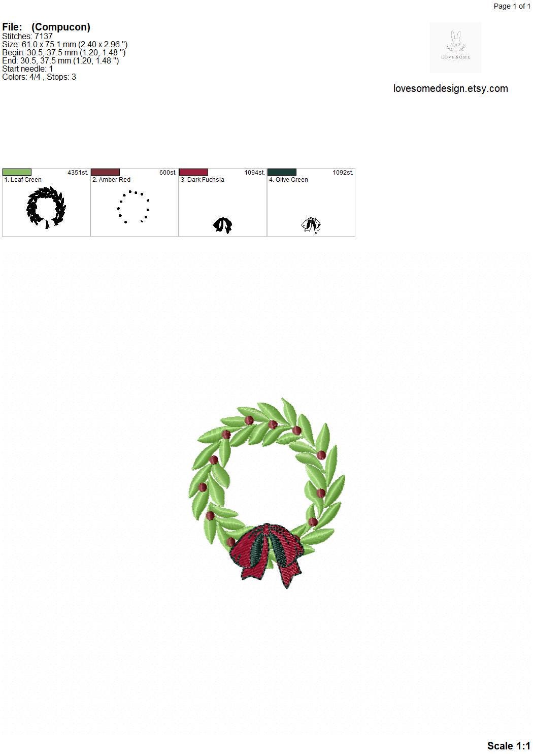 This listing features a machine embroidery file of satin stitch holiday wreath design in two sizes, 3 inch and 3.5inch size.