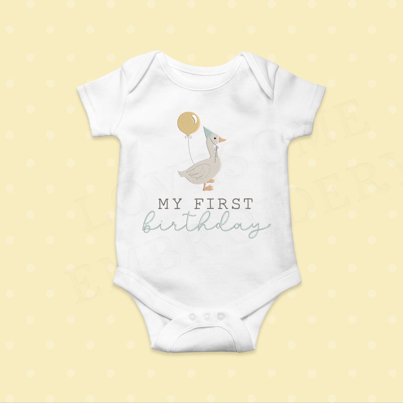 Silly Goose Balloon 4inch 5inch Machine Embroidery Design, Birthday Goose with Balloon Multiple Size Embroidery File | Lovesome Design