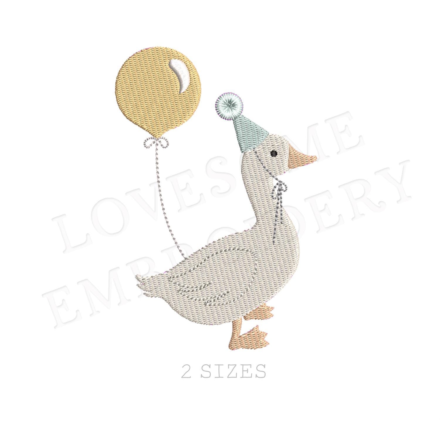 Silly Goose Balloon 4inch 5inch Machine Embroidery Design, Birthday Goose with Balloon Multiple Size Embroidery File | Lovesome Design