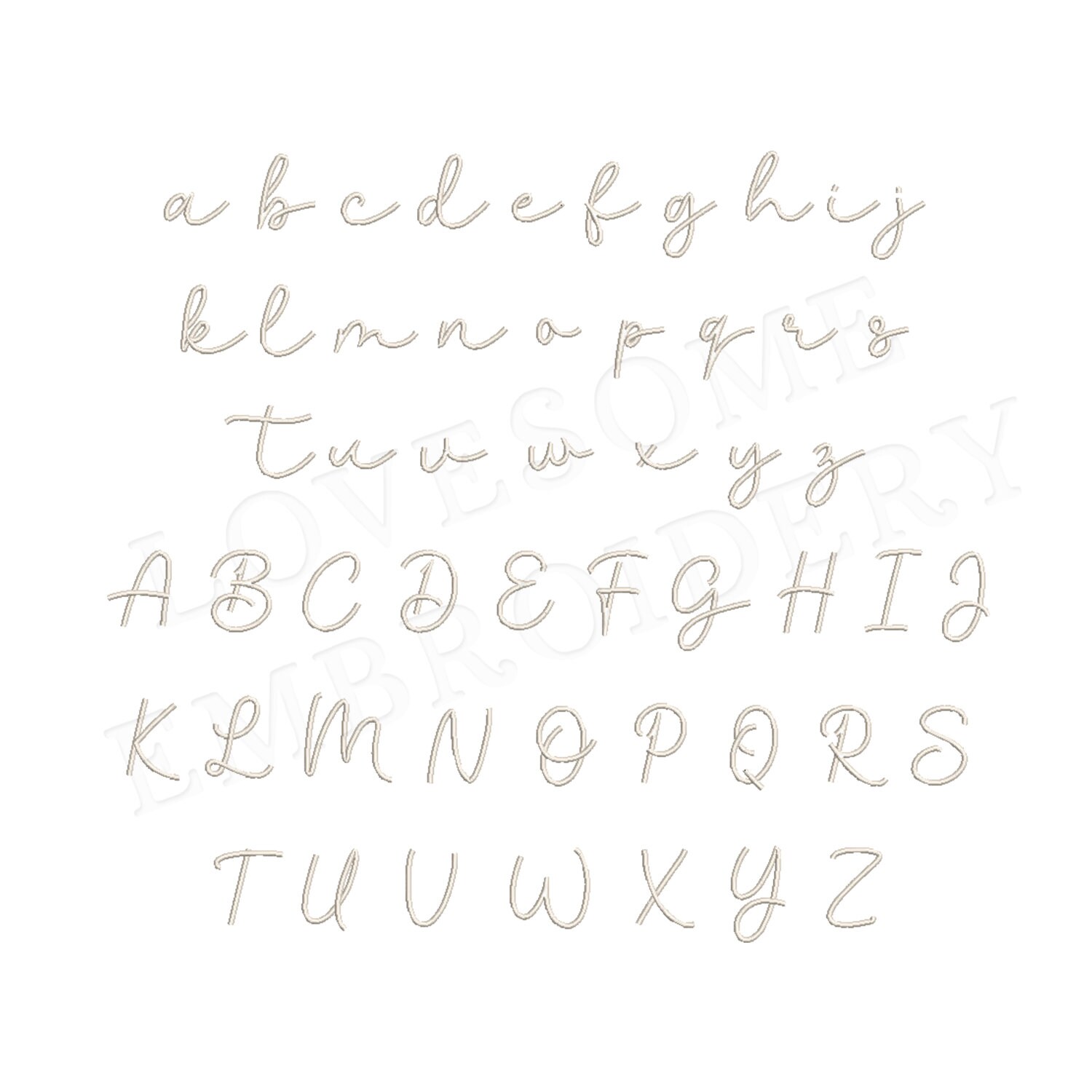 Farmhouse Script 0.5inch Satin Stitch Font A-Z, Cursive Run Stitch Font, Machine Embroidery Digital Download | Lovesome Design