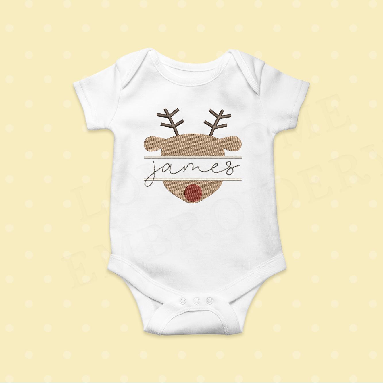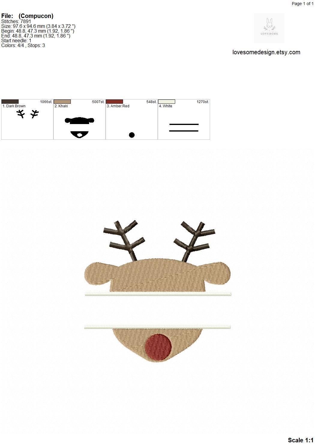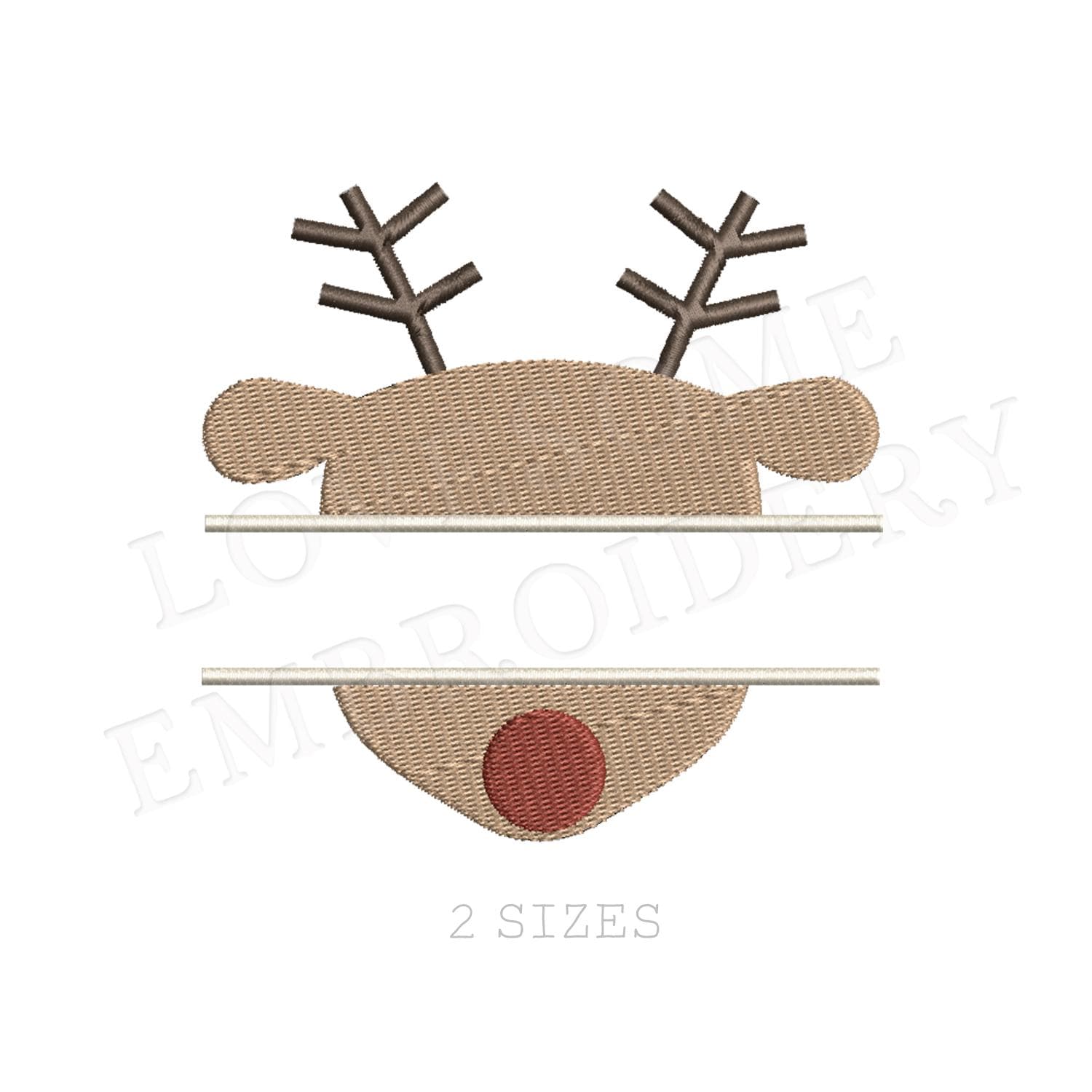 Rudolph Split Reindeer 4inch 5inch Embroidery Design, Customizable Reindeer Split Embroidery File, Christmas Deer | Lovesome Design