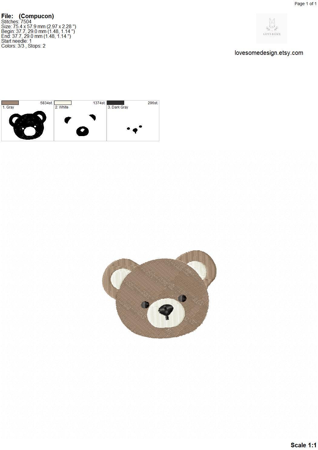 Cute Teddy Face Mini Three Sizes Machine Embroidery Design, Lovely Teddy Bear Multiple Size Embroidery File | Lovesome Design