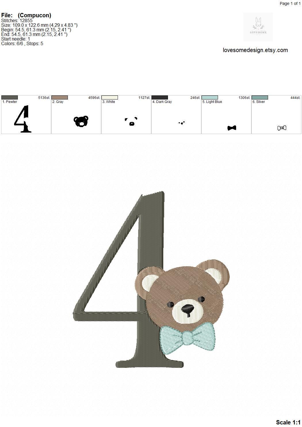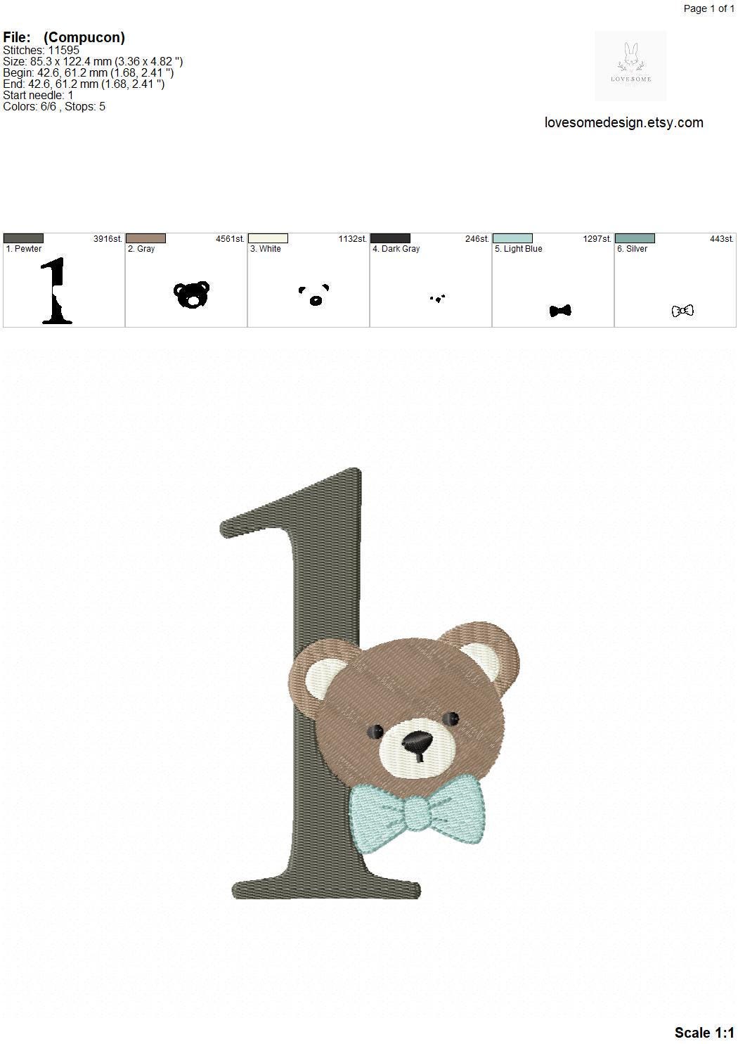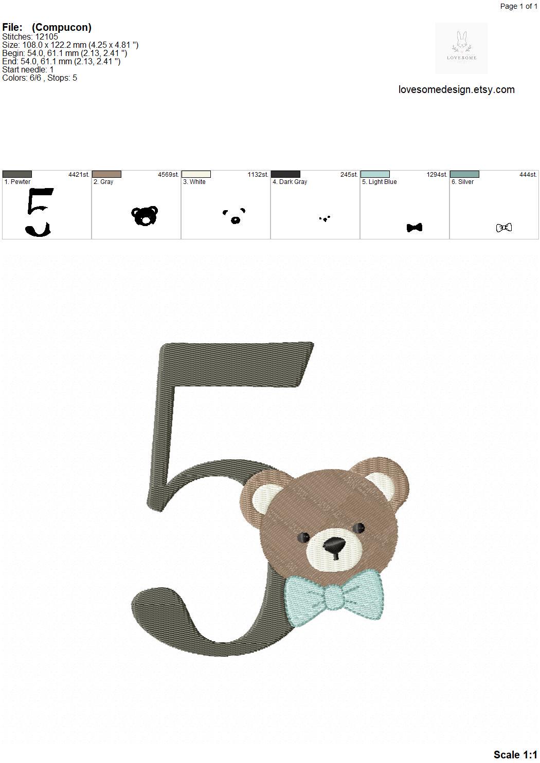 This listing features a machine embroidery numbers set which includes embroidery files of ten numbers (0-9) with cute teddy with bow tie design in 5inch size for machine embroidery. (For the whole set, pls see the listing images.)