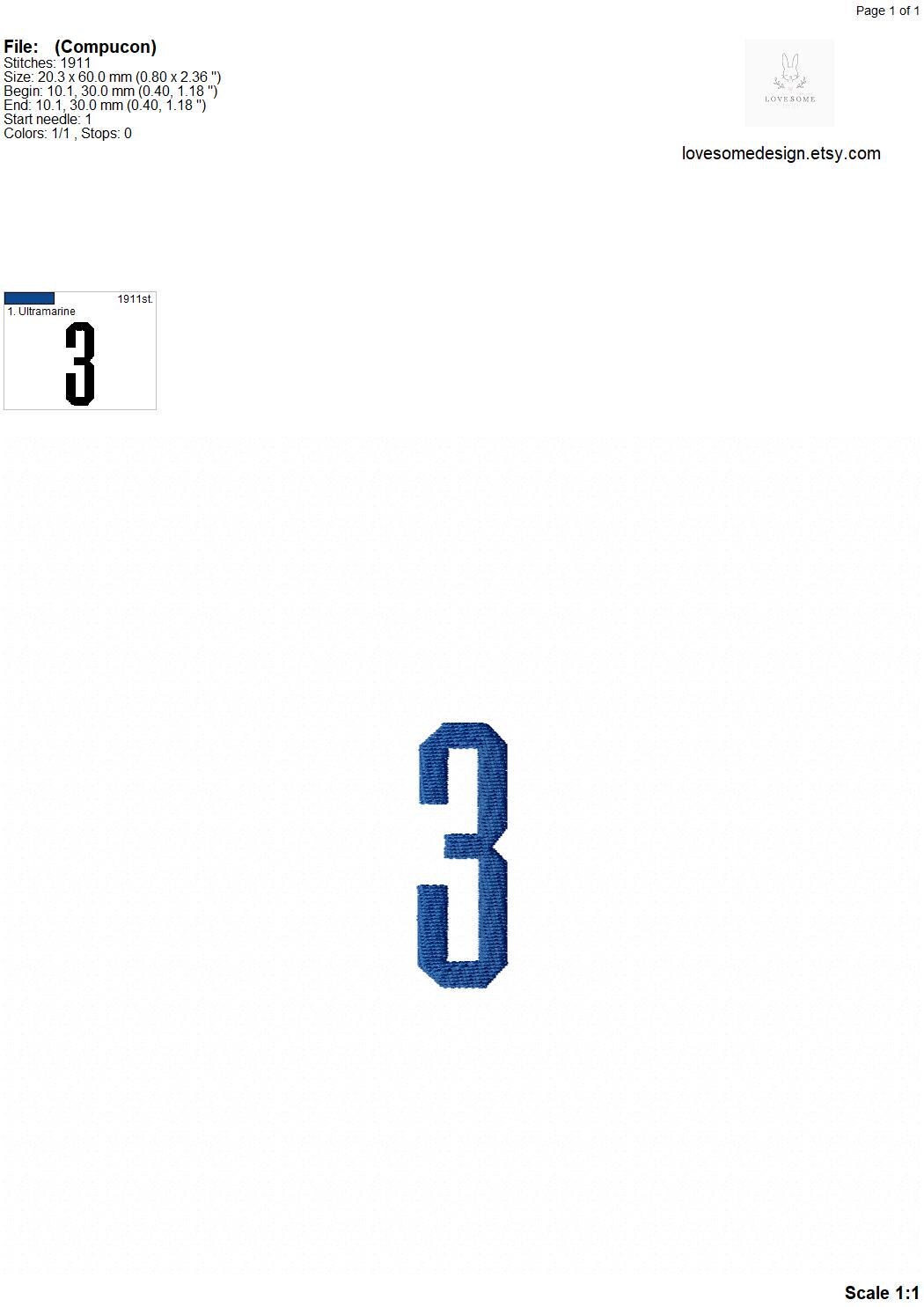 This listing features a machine embroidery numbers set in fill stitch which includes embroidery files of 10 numbers in 2.5inch size. (For the whole set, pls see the listing images.)