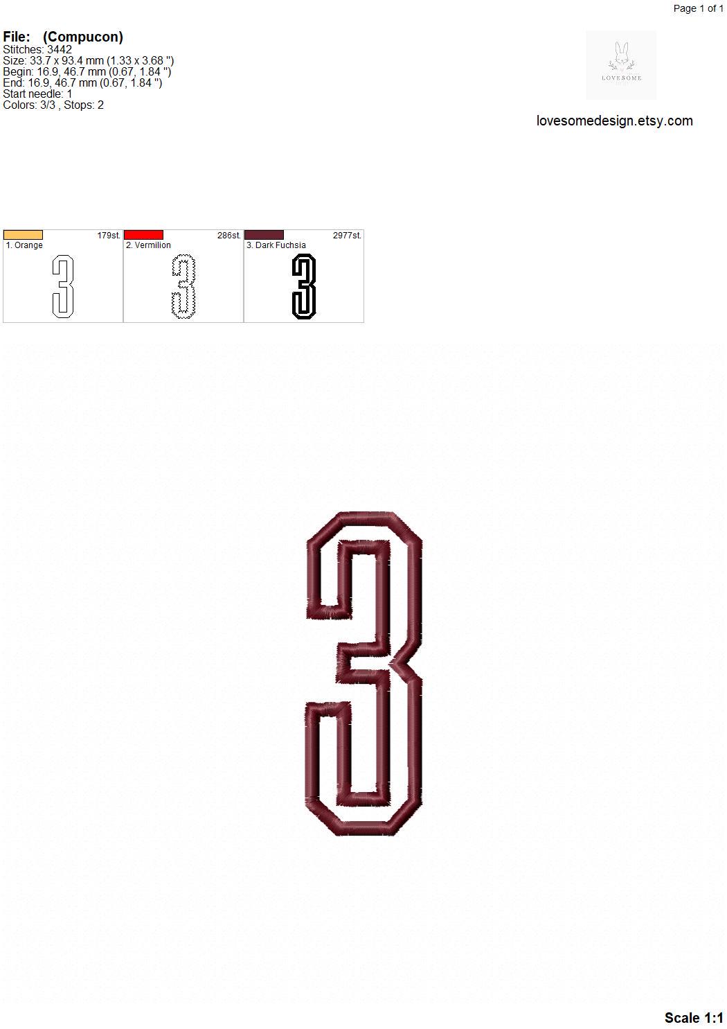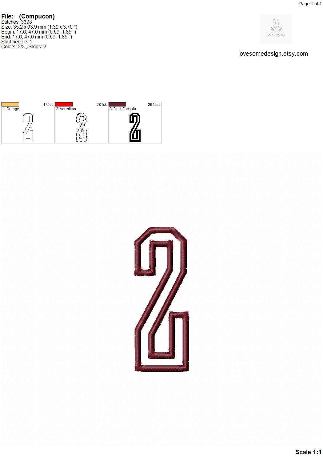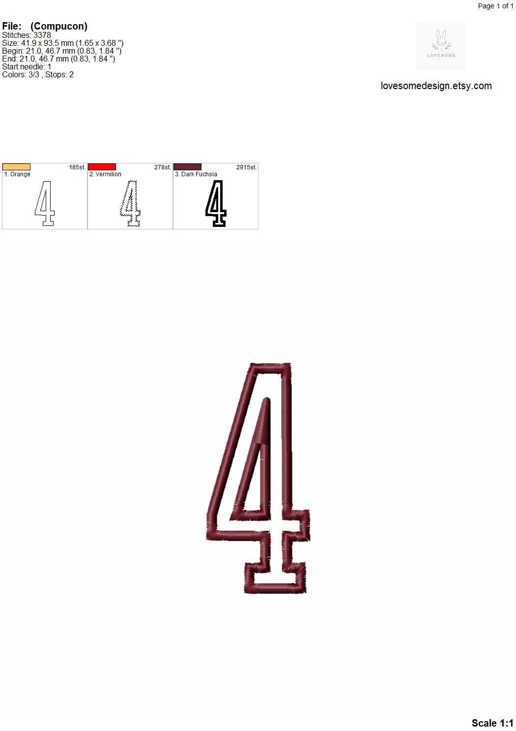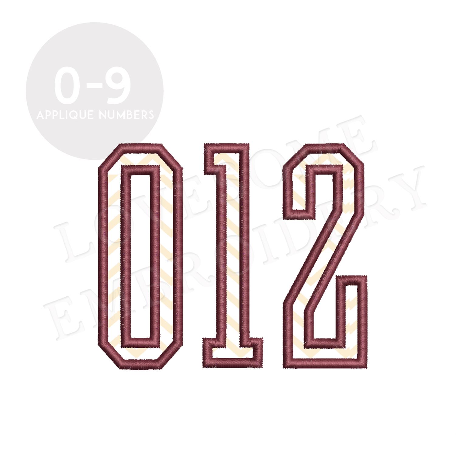 This listing features a machine embroidery outline college numbers set in applique stitch which includes embroidery files of 10 numbers in 4inch size. (For the whole set, pls see the listing images.)