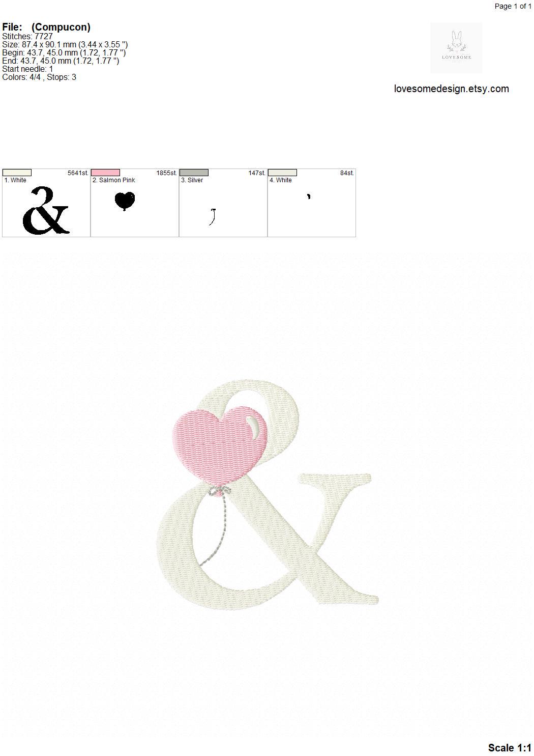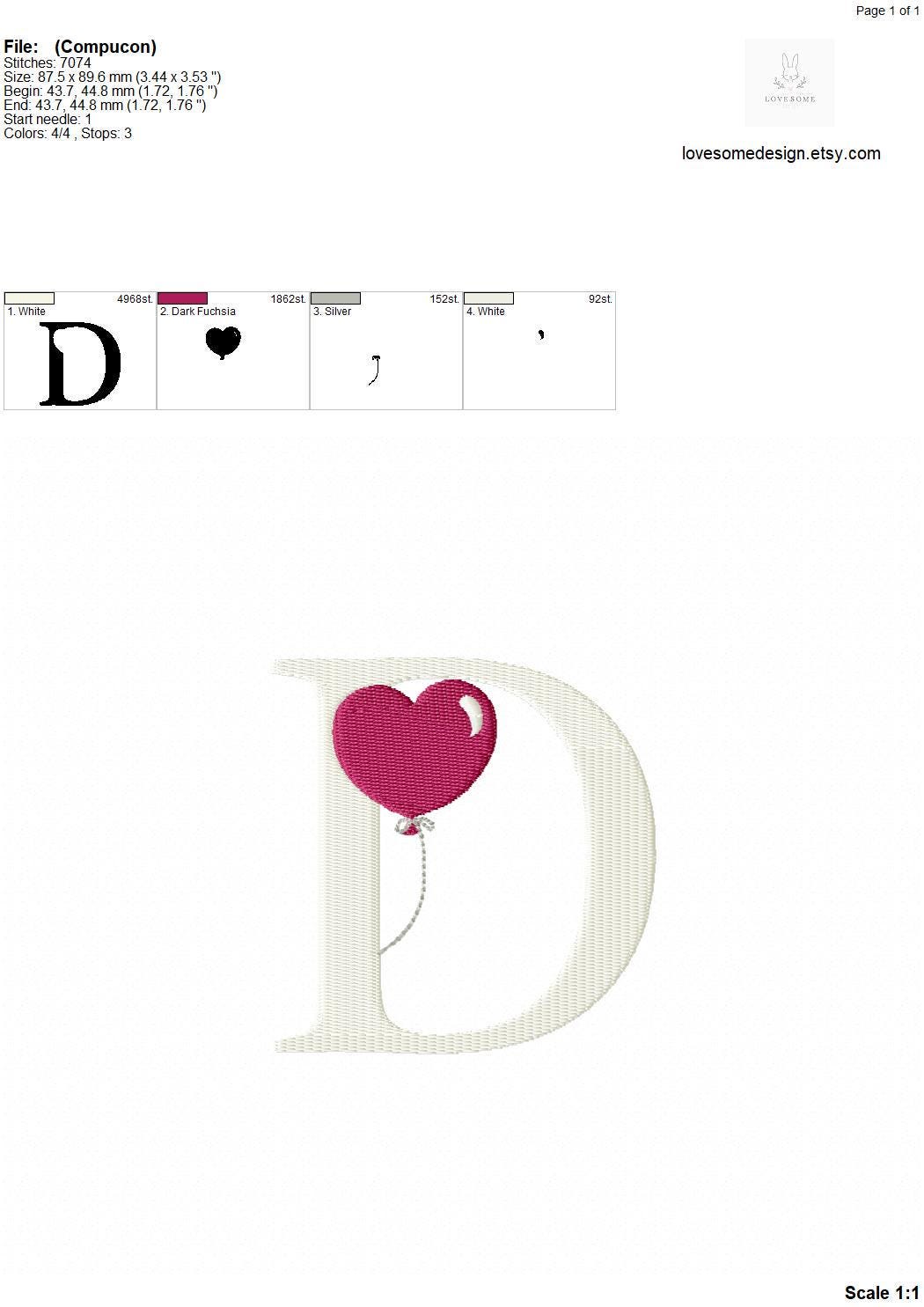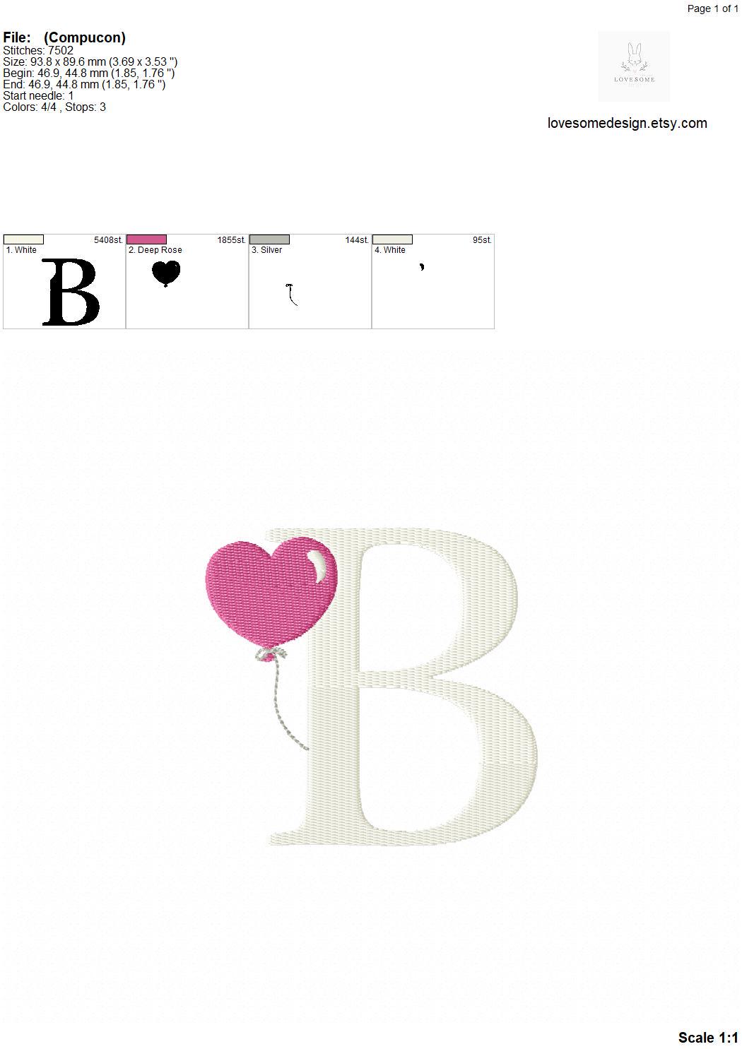 This listing features a machine embroidery font set which includes embroidery files of 26 uppercase monogram letters with heart balloon design in 4inch size. (For the whole set, pls see the listing images.)