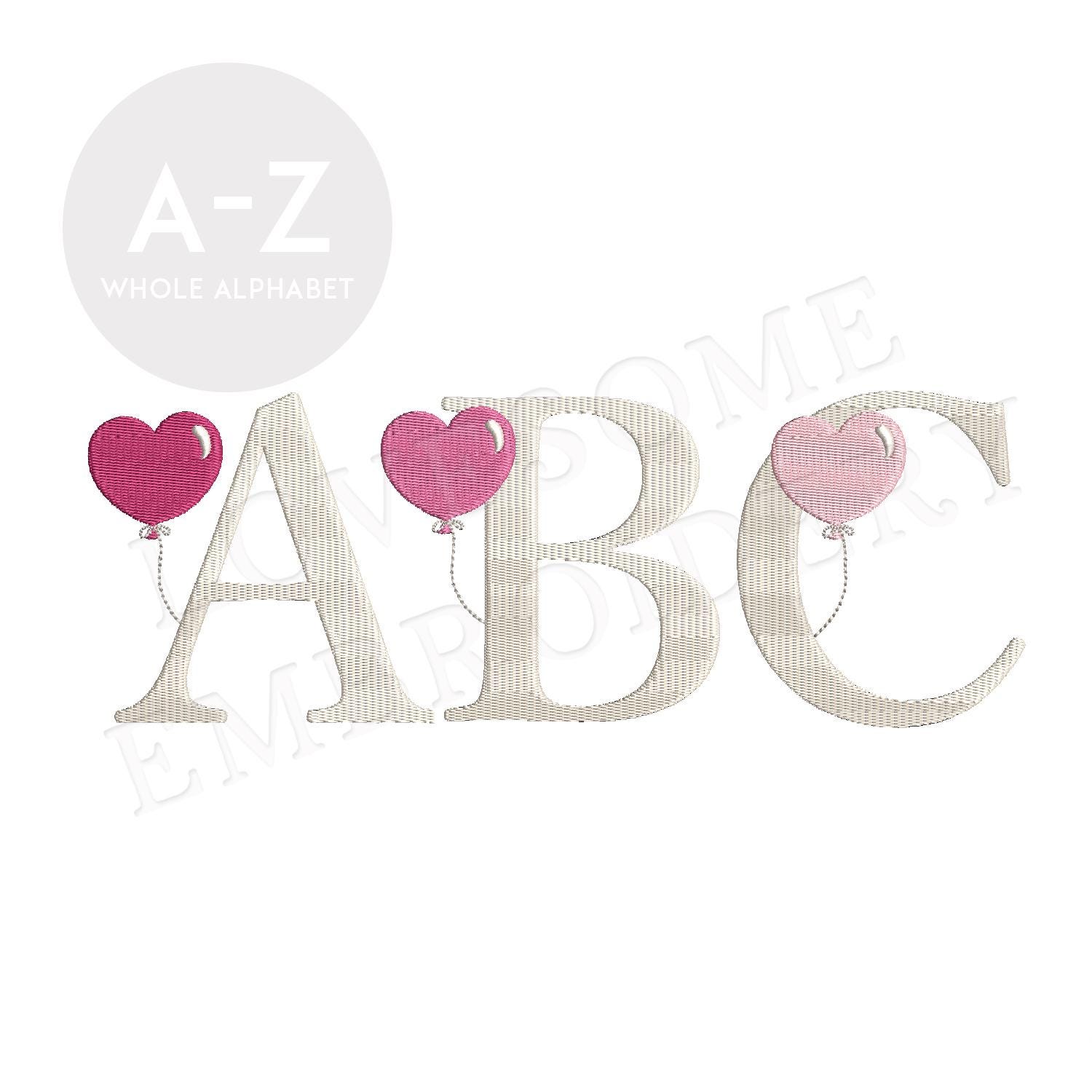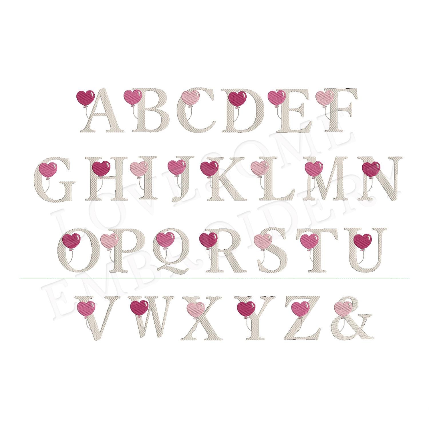 Heart Balloon 4inch A-Z Valentines Day Alphabet Machine Embroidery Font Digital Download | Lovesome Design