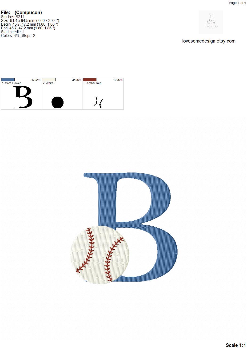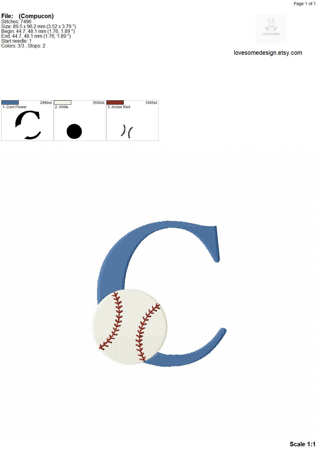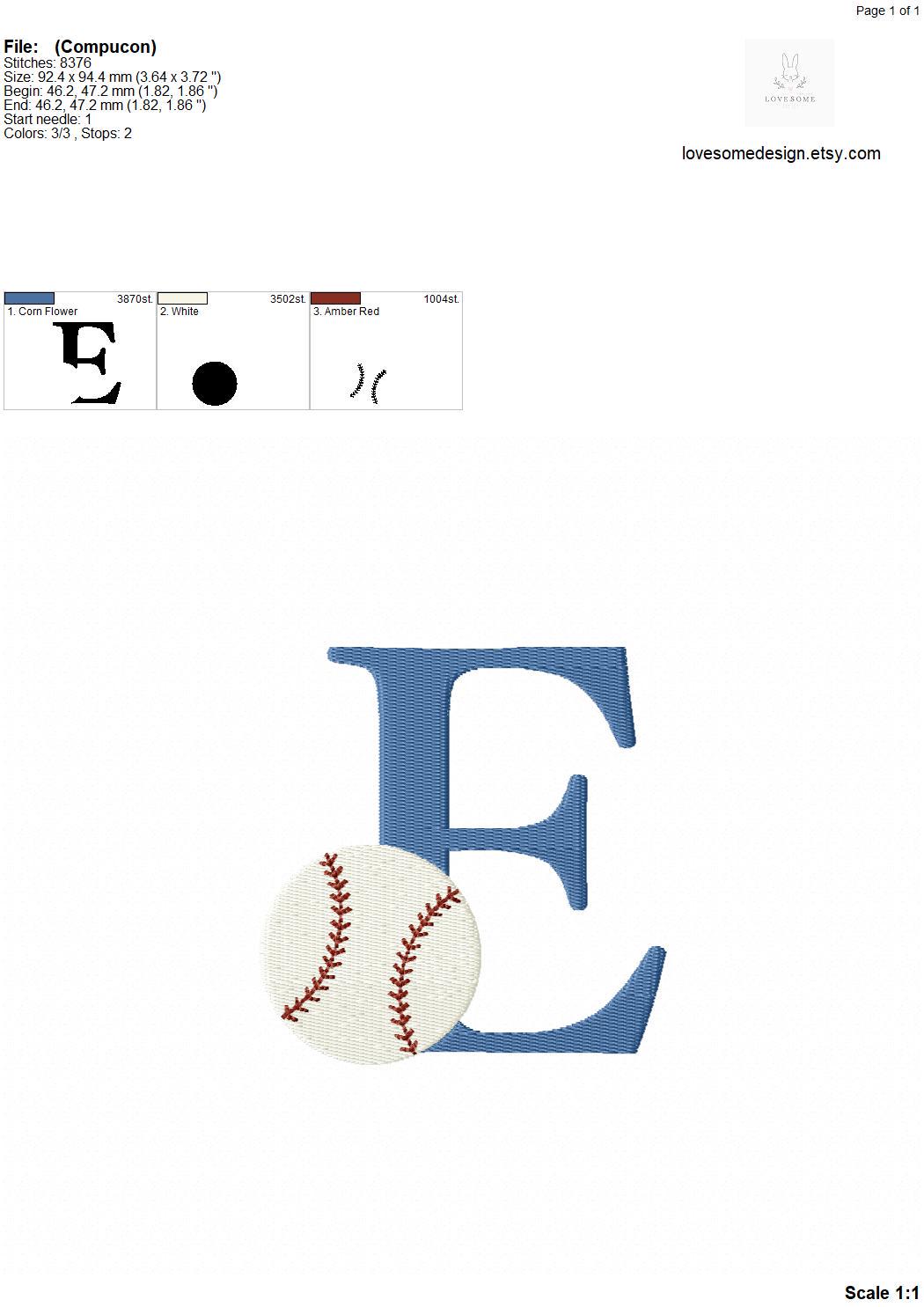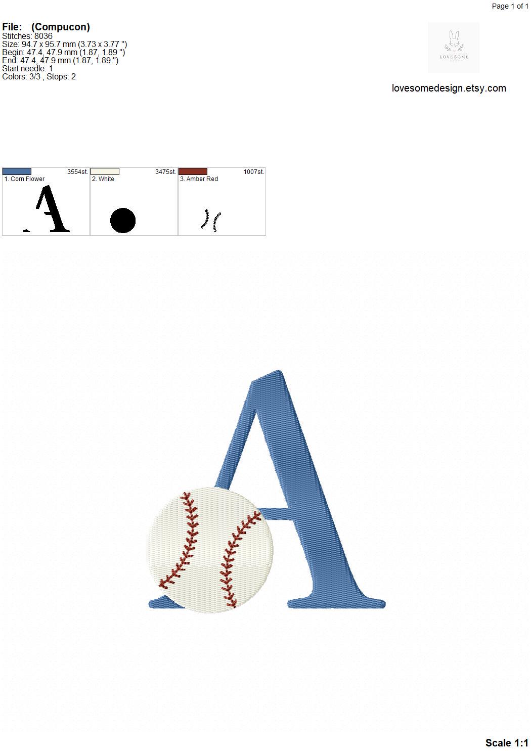This listing features a machine embroidery font set which includes embroidery files of 26 uppercase sports embroidery letters with a baseball design in 4inch size. (For the whole set, pls see the listing images.)
