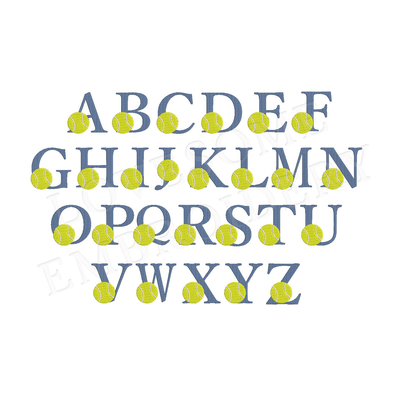 Tennis Ball 3inch Monogram A-Z Sports Embroidery Initials Machine Embroidery Font Digital File | Lovesome Design