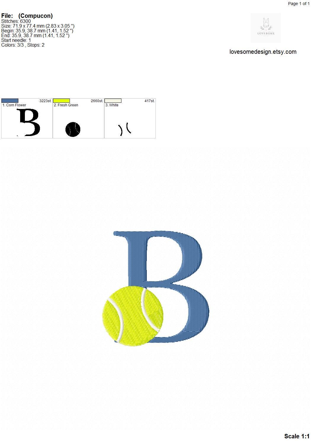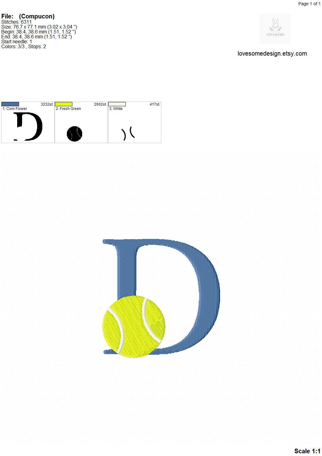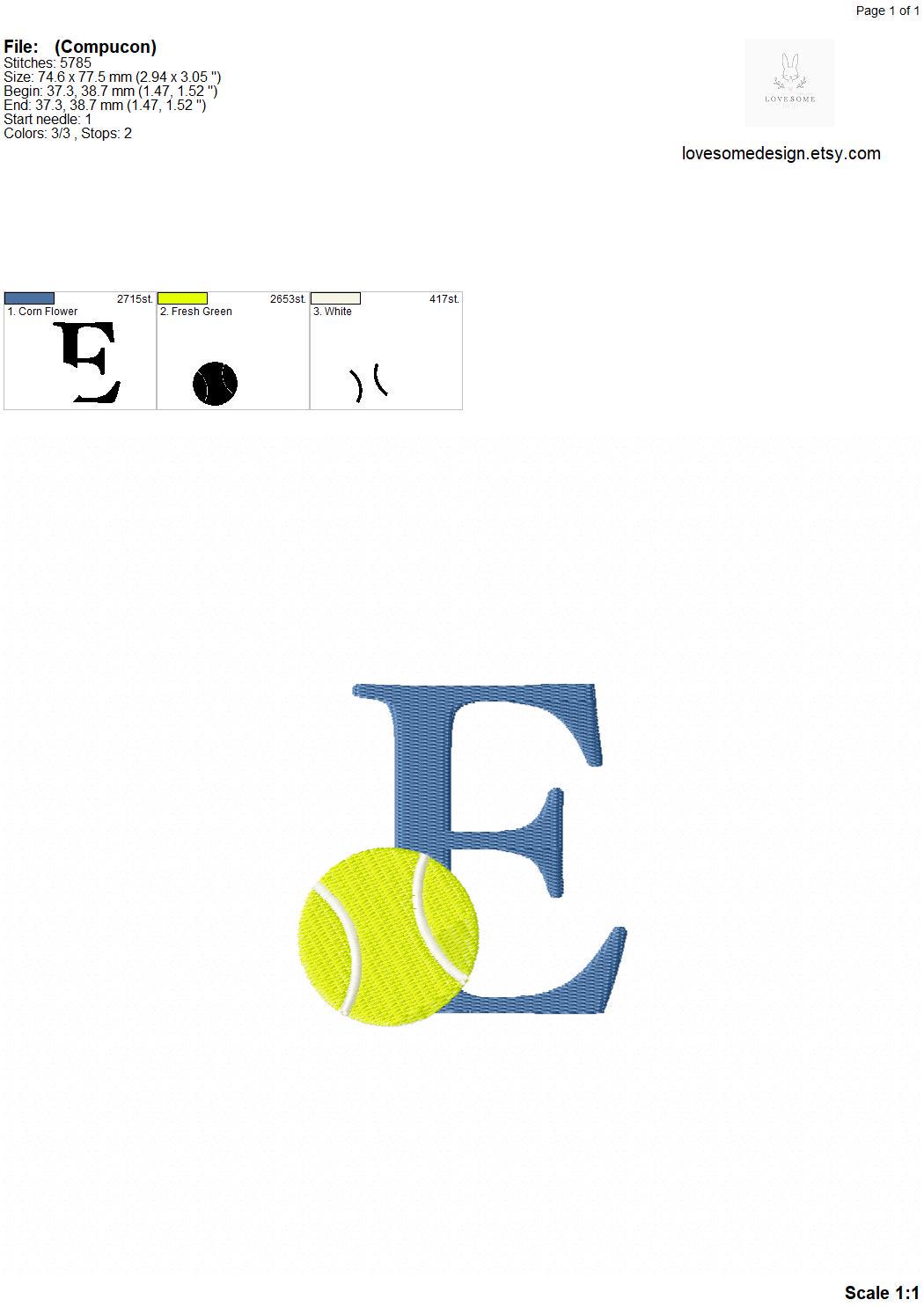 This listing features a machine embroidery font set which includes embroidery files of 26 uppercase sports embroidery letters with a tennis ball design in 3inch size. (For the whole set, pls see the listing images.)