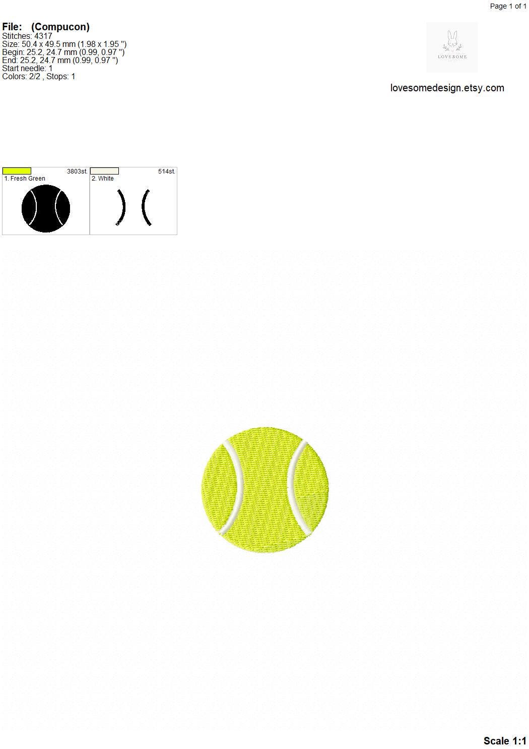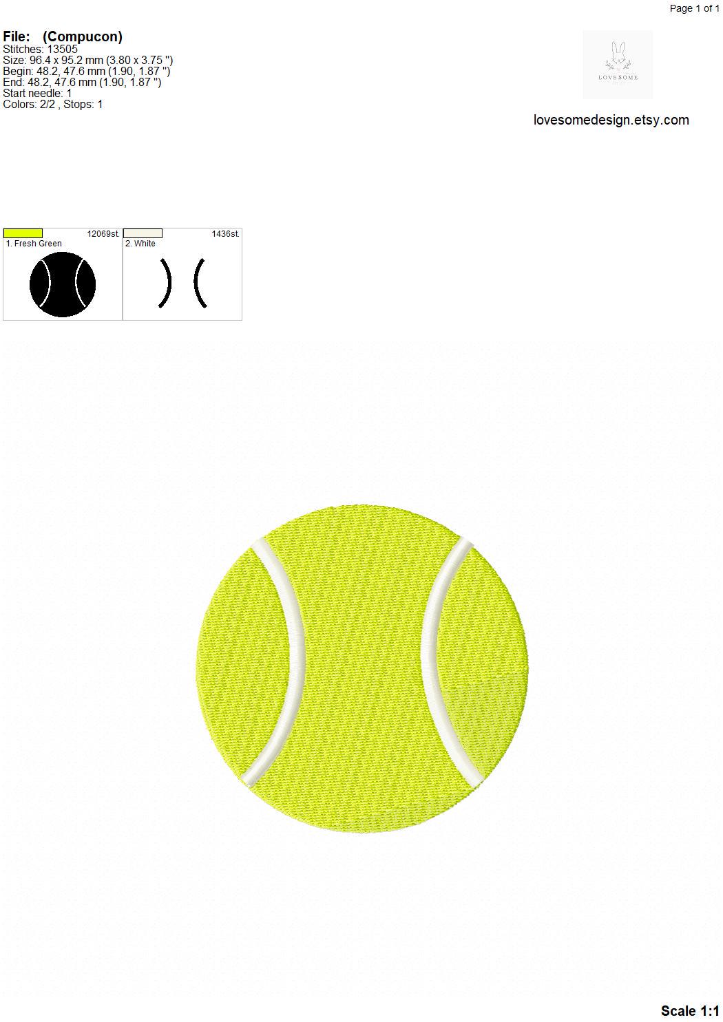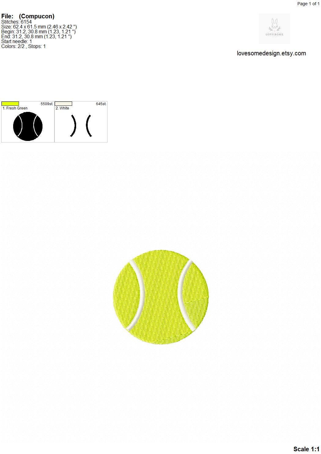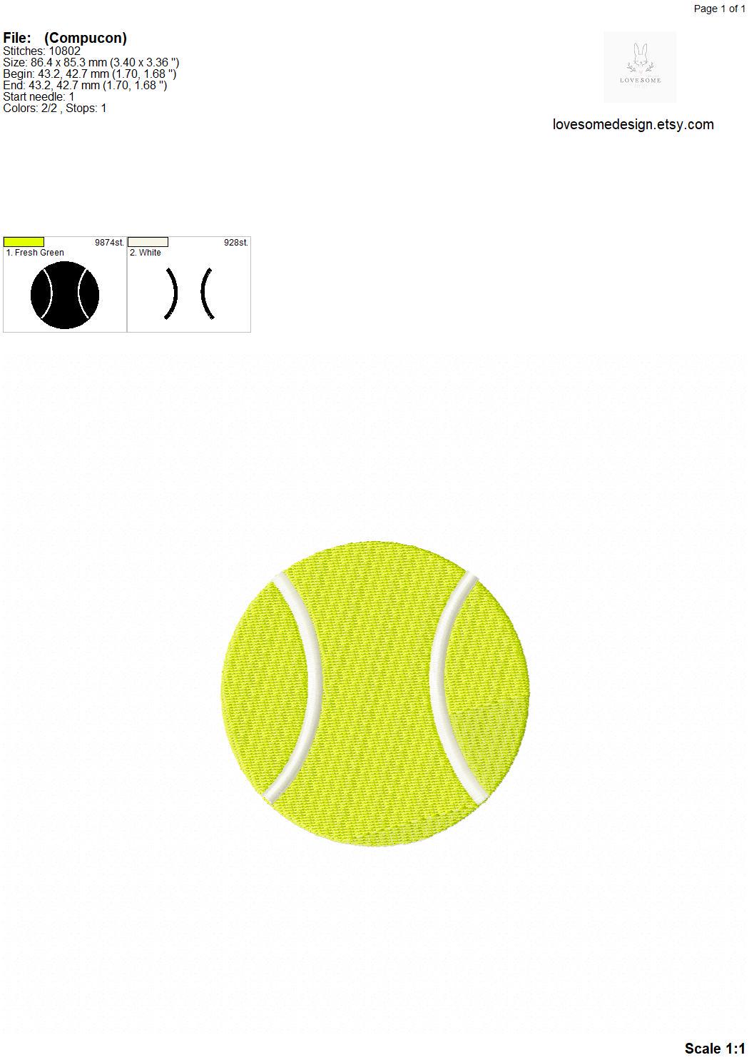 Tennis Ball Multisize Embroidery Design, Racket Sports Machine Embroidery Digital File | Lovesome Design