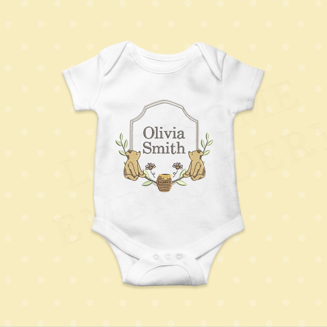Classic Pooh 6inch Baby Crest Machine Embroidery Design File Digital Download | Lovesome Design