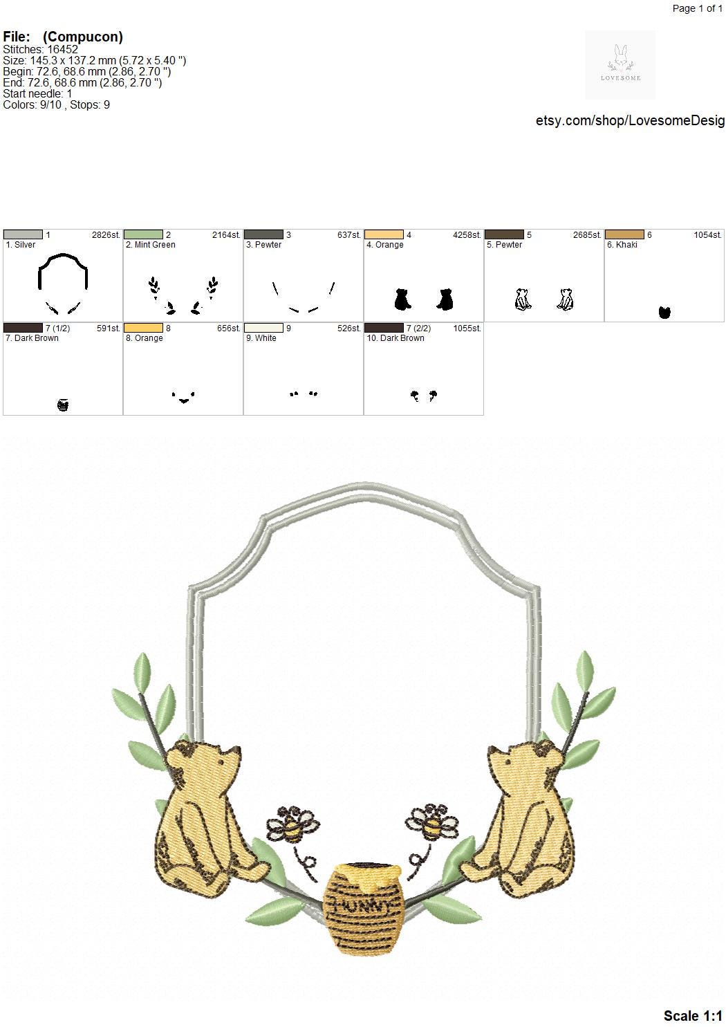 This listing features a machine embroidery file of Classic Winnie Pooh crest design in 6 inch size.