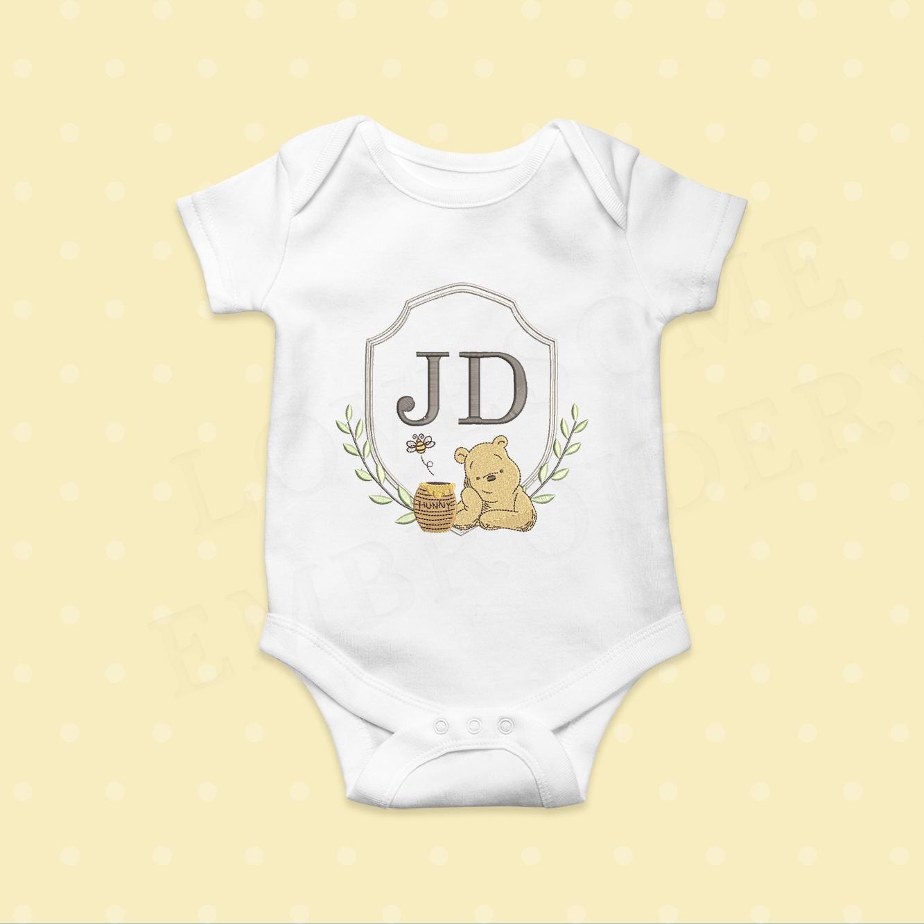 Classic Pooh 5inch Baby Crest Machine Embroidery Design File Digital Download | Lovesome Design