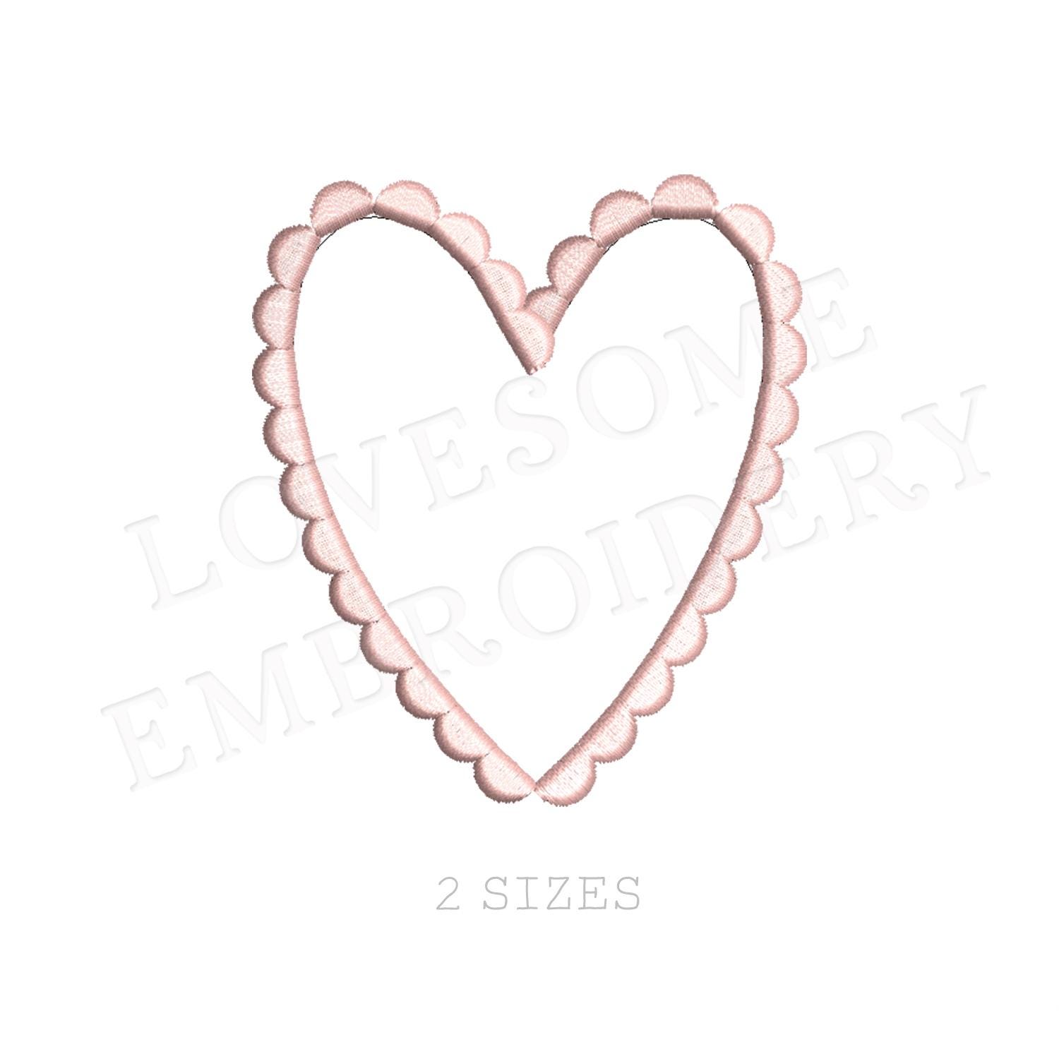 Scalloped Heart Two Sizes 6inch 8inch Embroidery Design, Scallop Edge Heart Frame Machine Embroidery Digital File | Lovesome Design