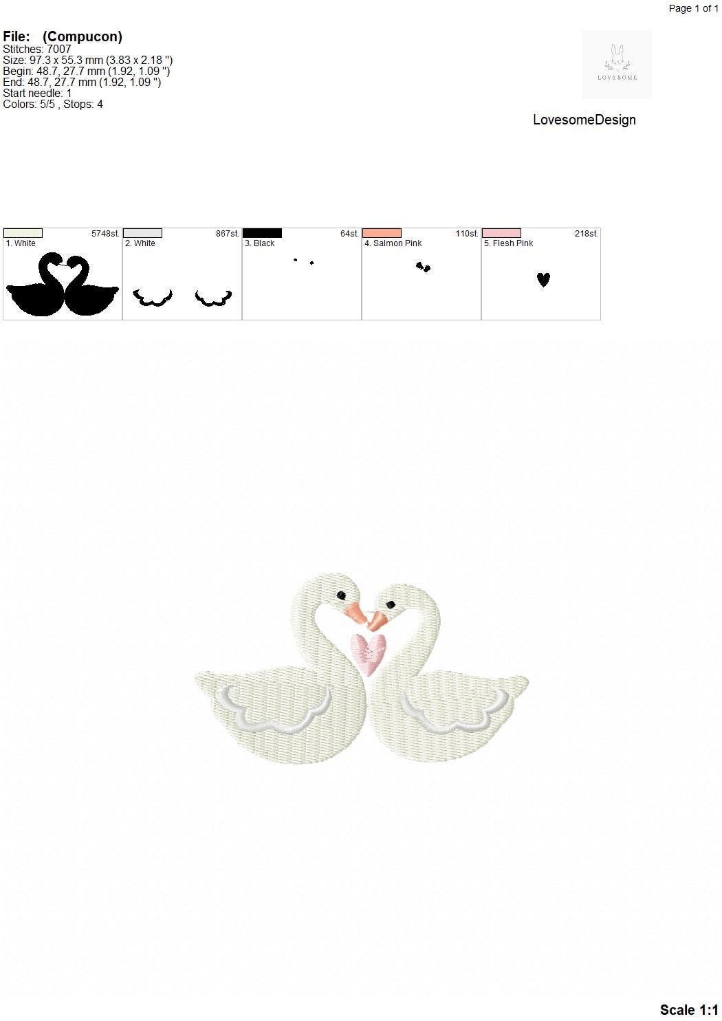 This listing includes one romantic swan couple design in 4inch size for machine embroidery.