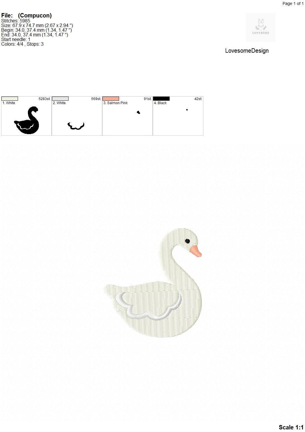 Cute Swan Right 2.5inch 3inch Mini Two Sizes Machine Embroidery Design, Lovely Swan Multiple Size Embroidery File | Lovesome Design
