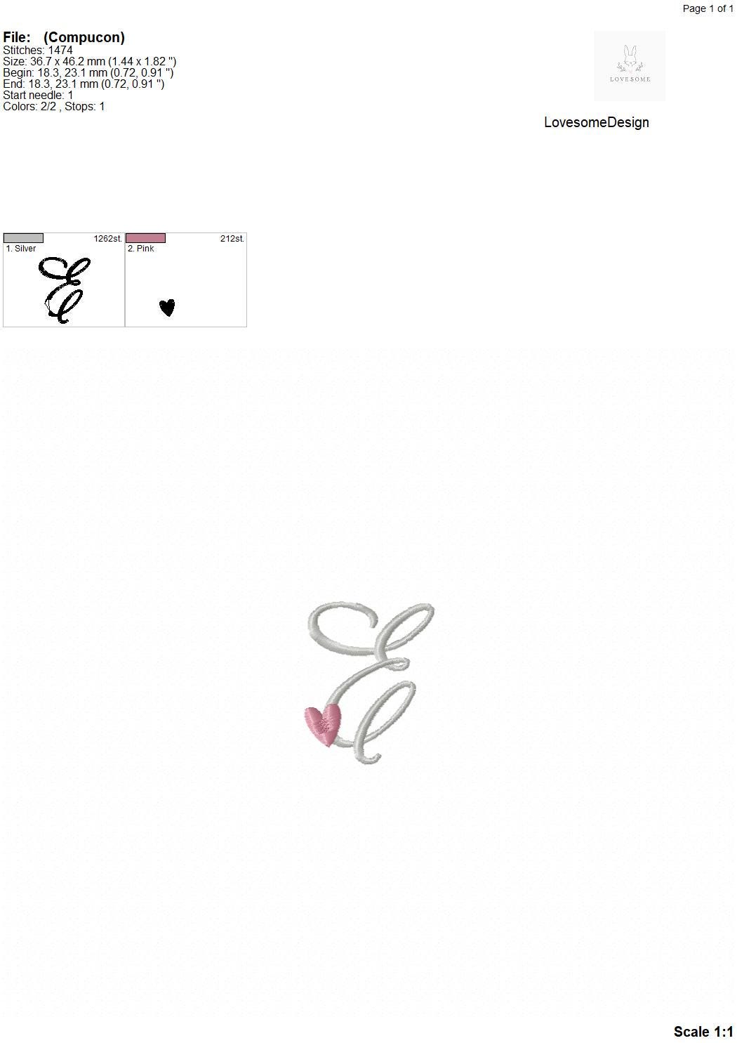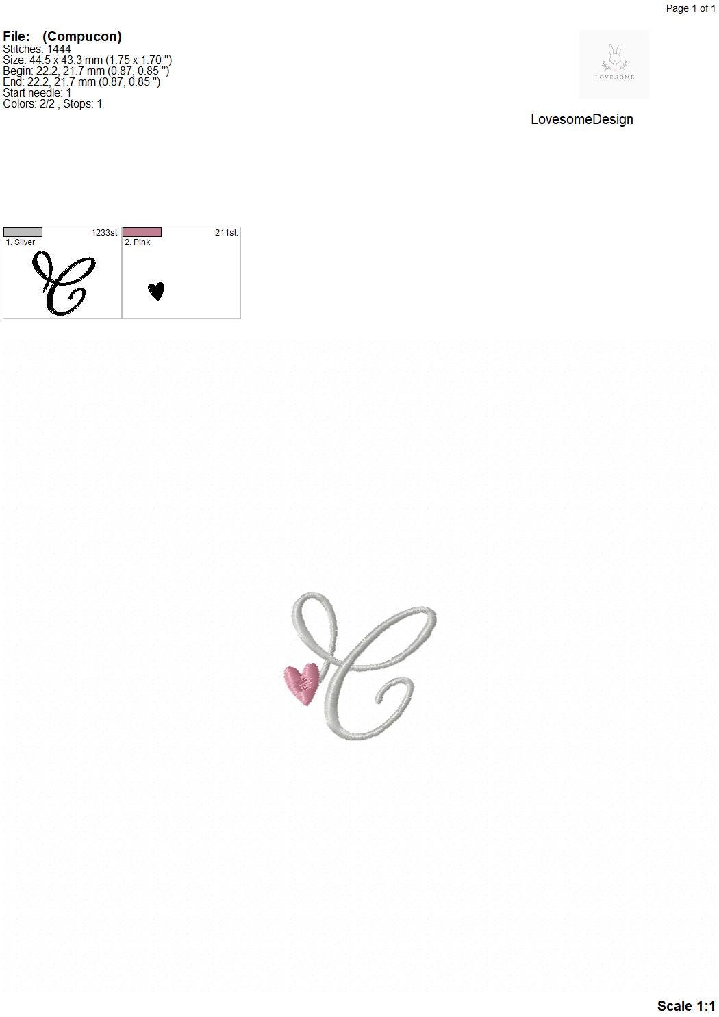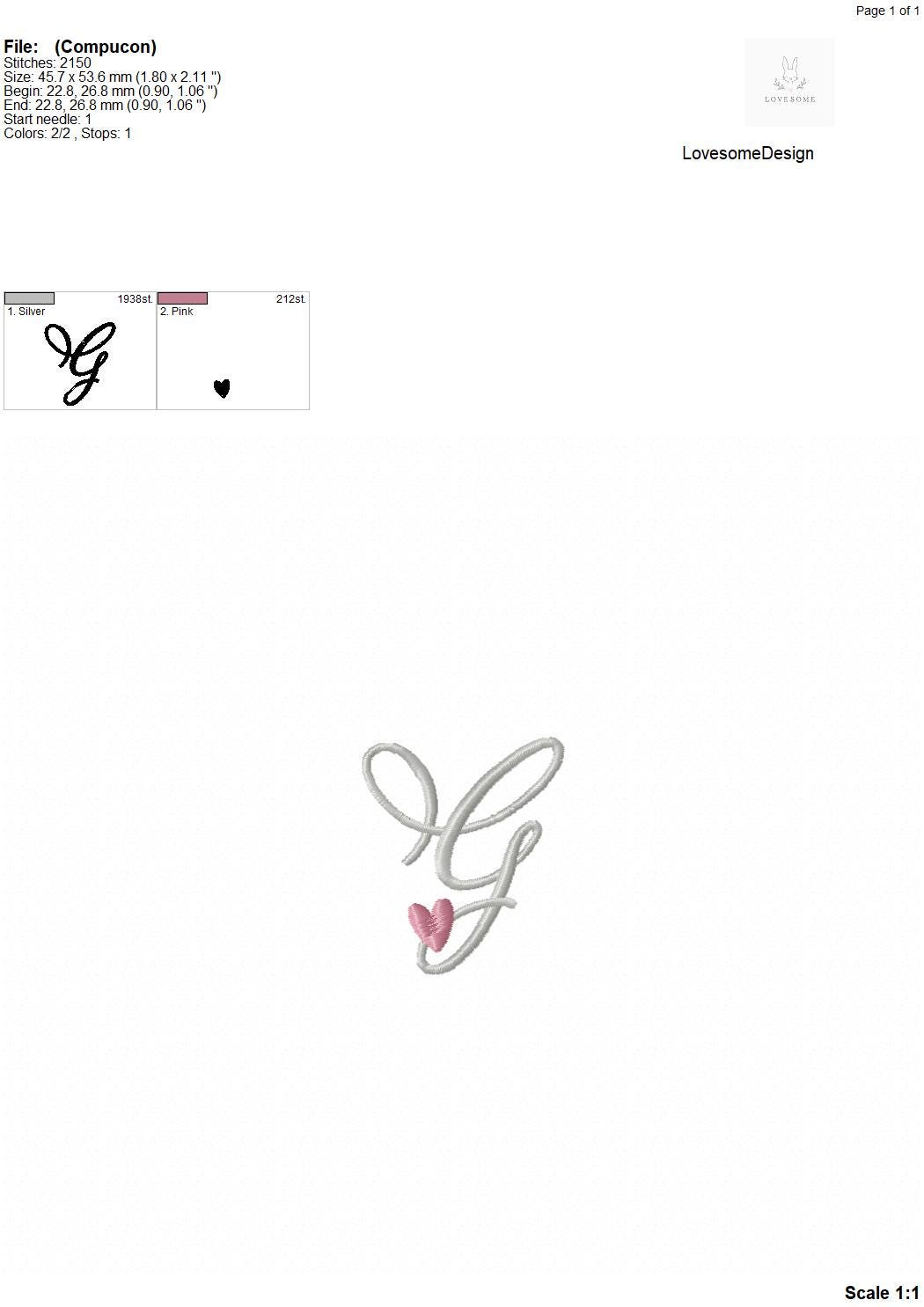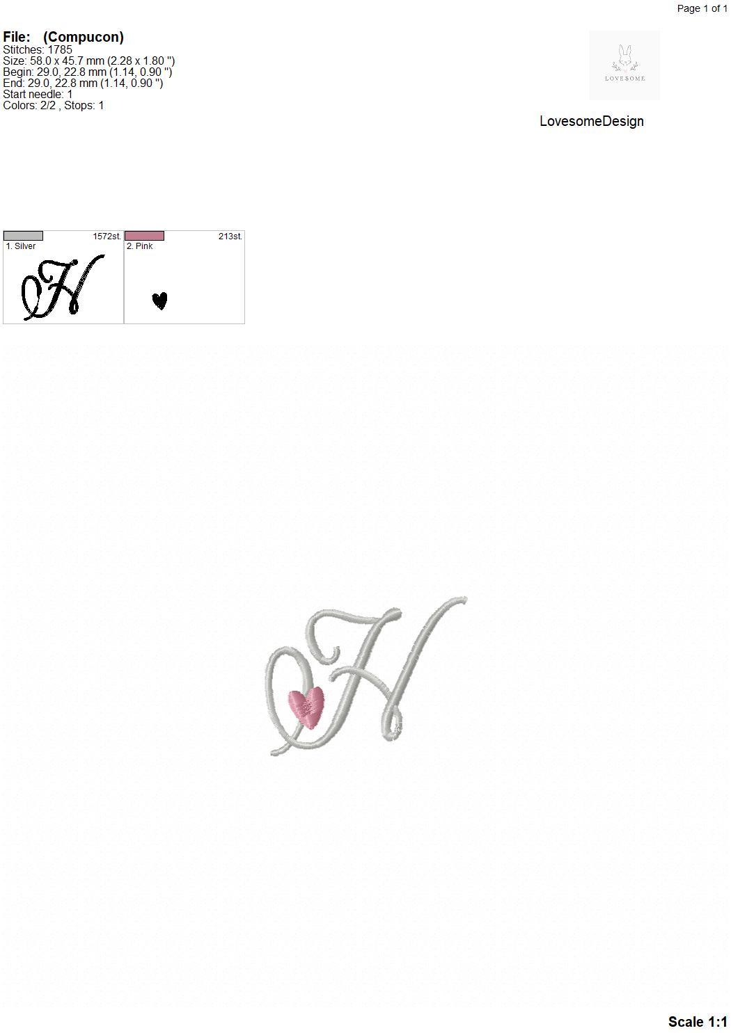 This listing features a machine embroidery font set which includes embroidery files of 26 uppercase cursive calligraphy letters with heart design in 2inch size. (For the whole set, pls see the listing images.)