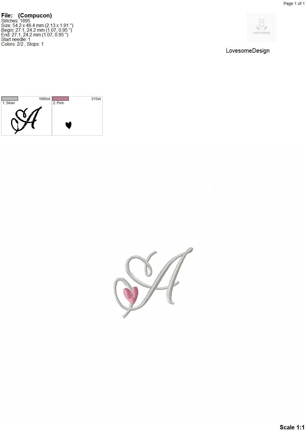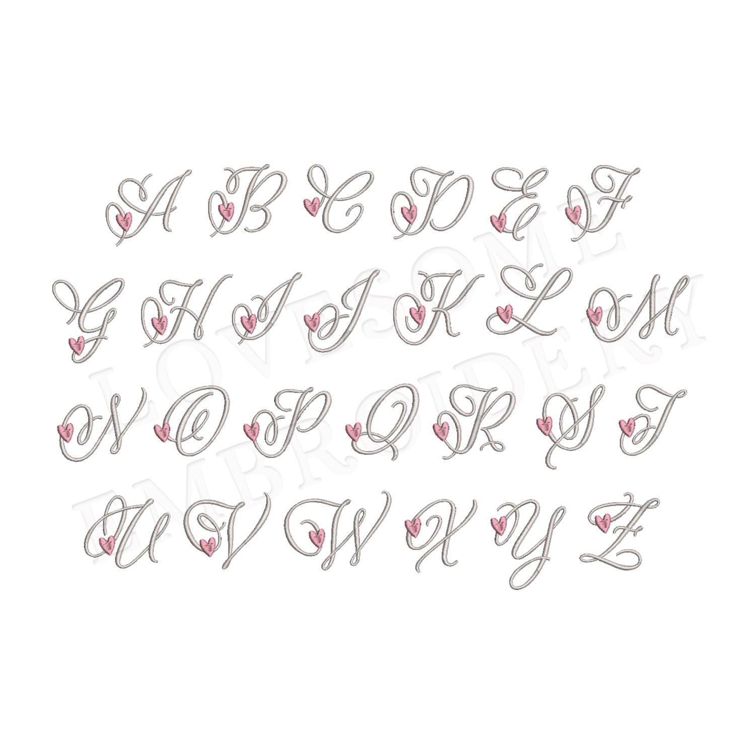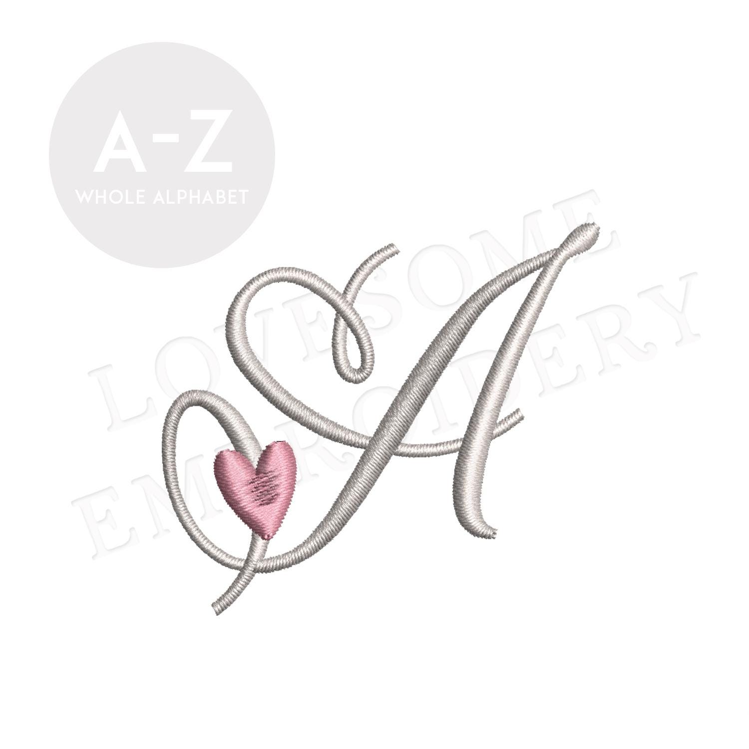 Heart Script Initials 2inch A-Z Valentines Day Wedding Monogram Machine Embroidery Font Digital Download | Lovesome Design