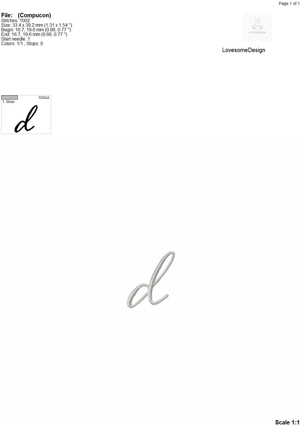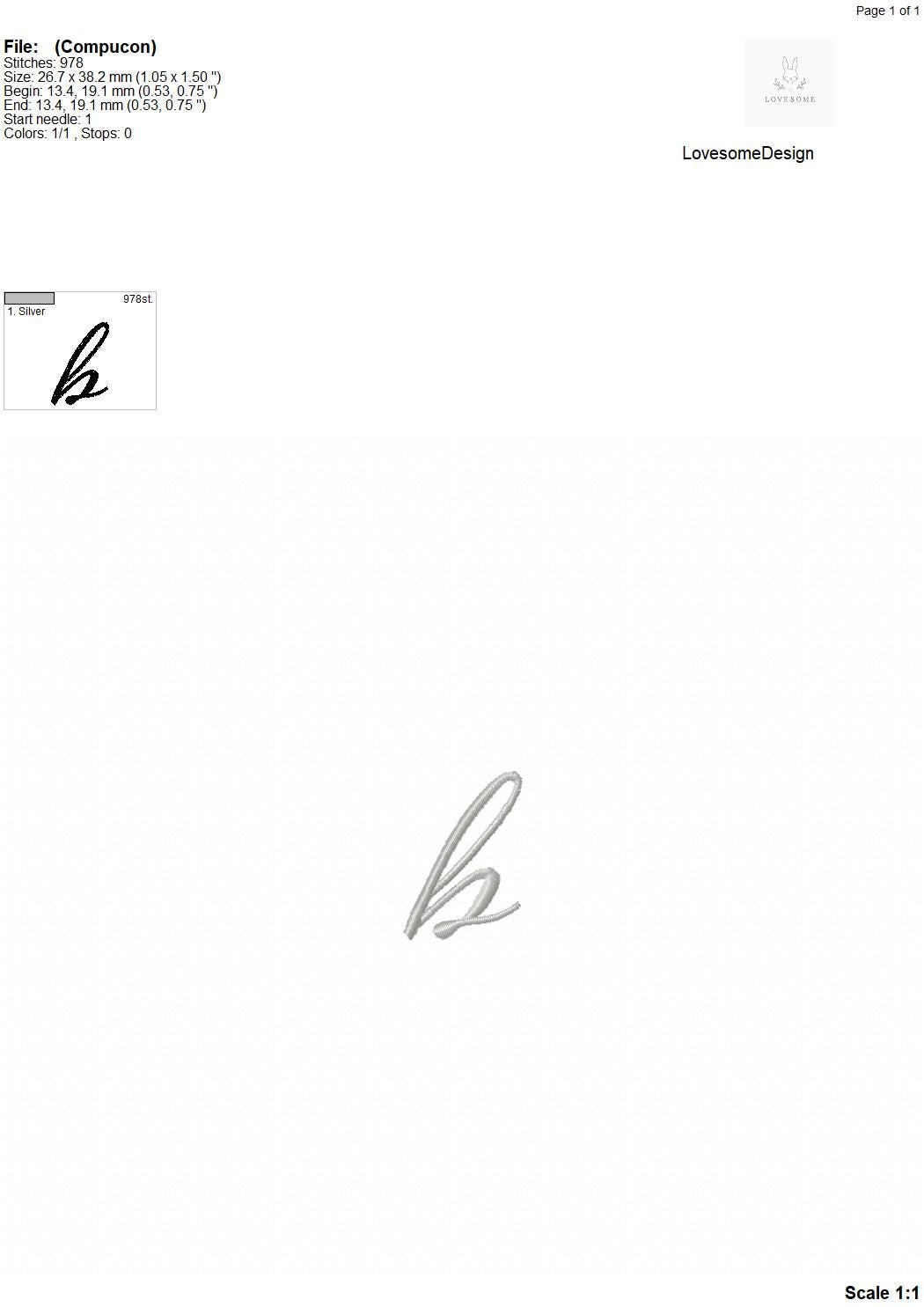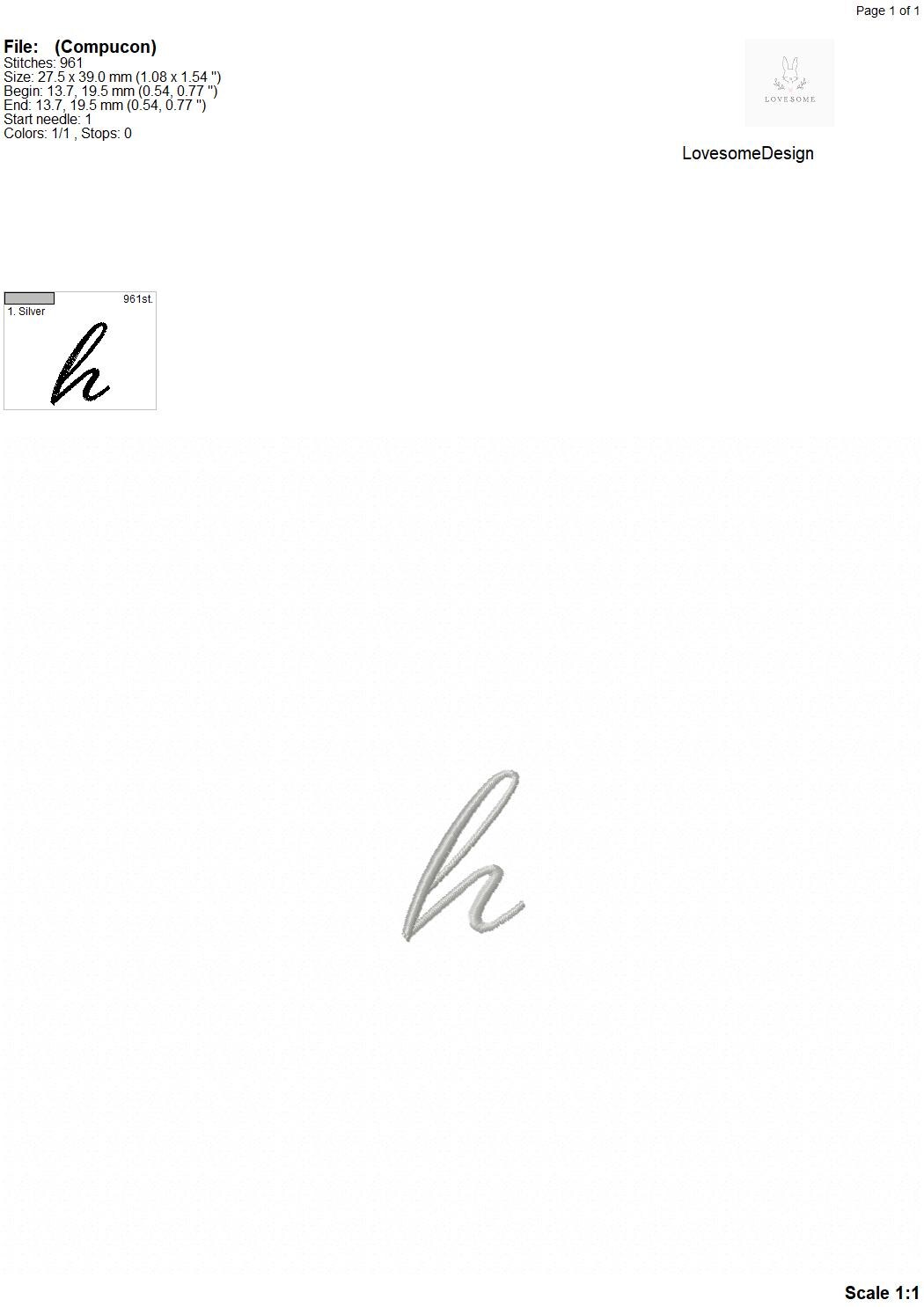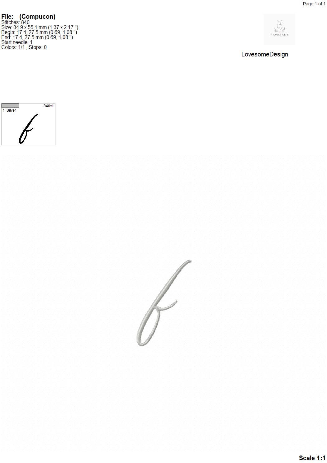 This listing features a machine embroidery font set which includes embroidery files of 26 lowercase cursive calligraphy letters and a cute heart design in appr. 2inch size. (For the whole set, pls see the listing images.)
