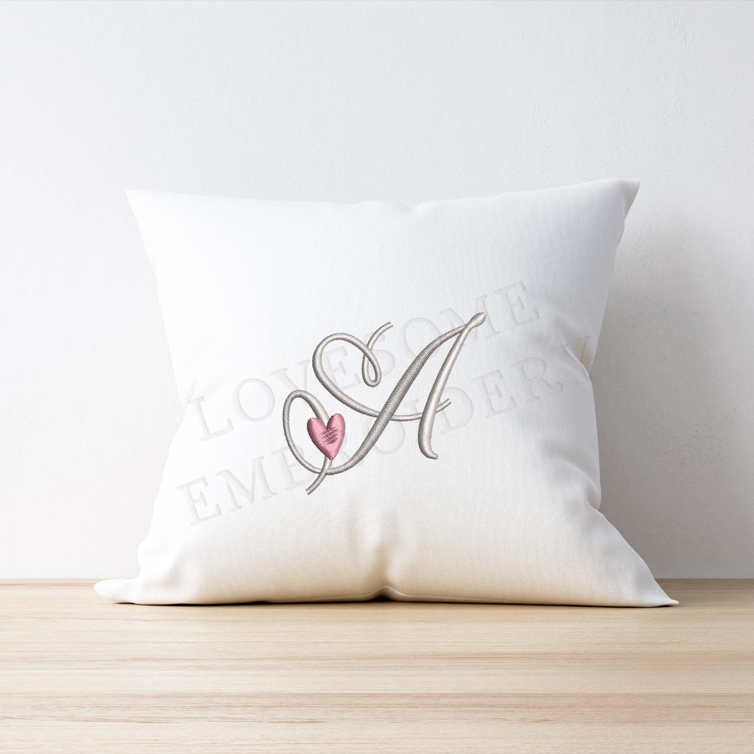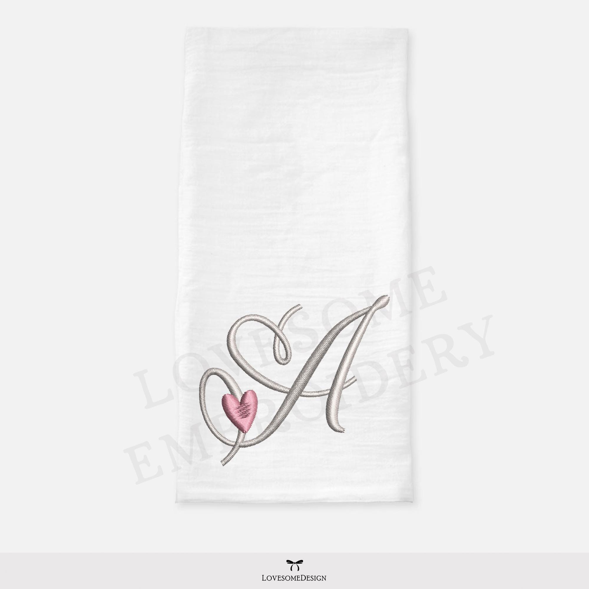Heart Script Initials 3.5inch A-Z Valentines Day Wedding Monogram Machine Embroidery Font Digital Download | Lovesome Design