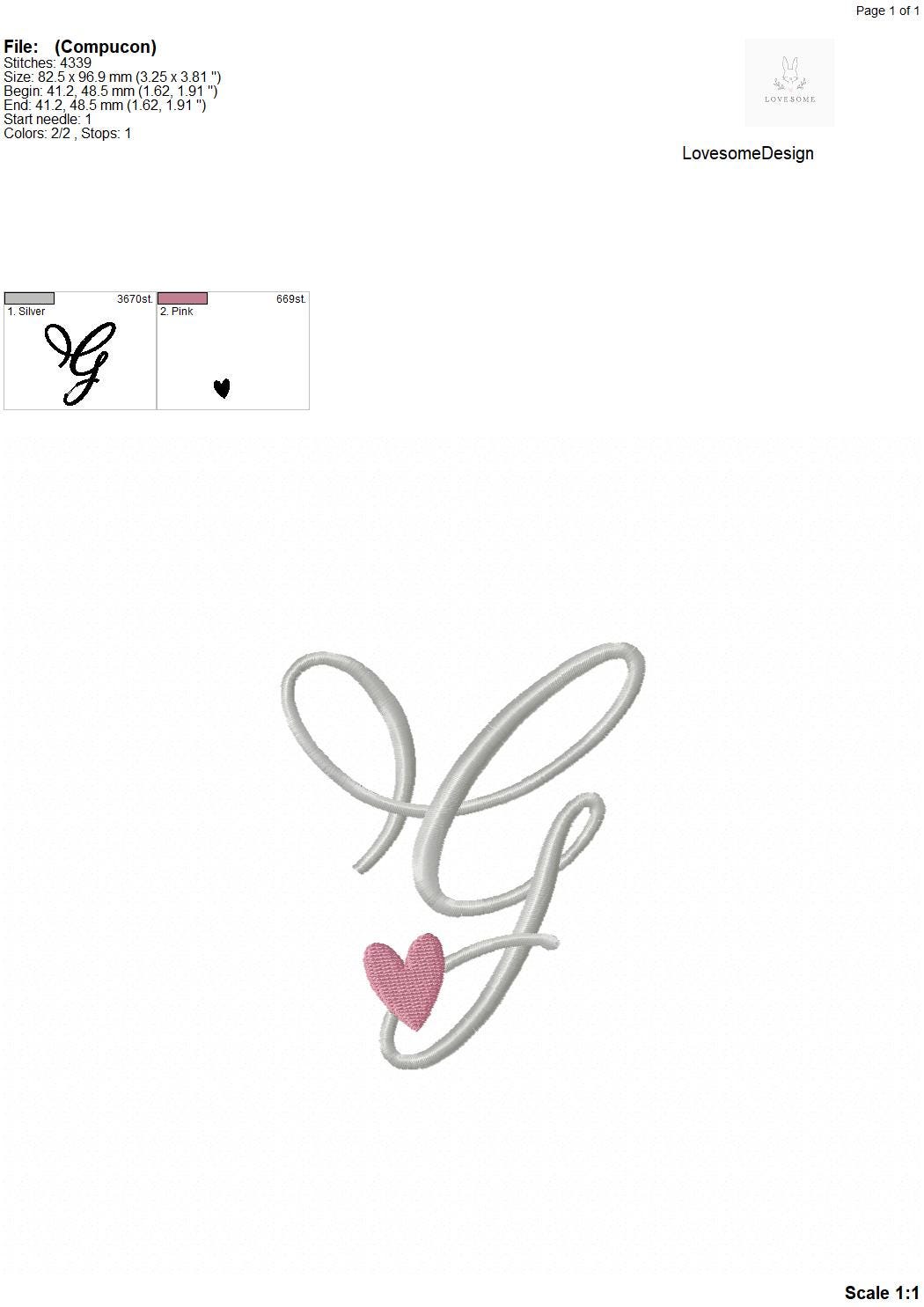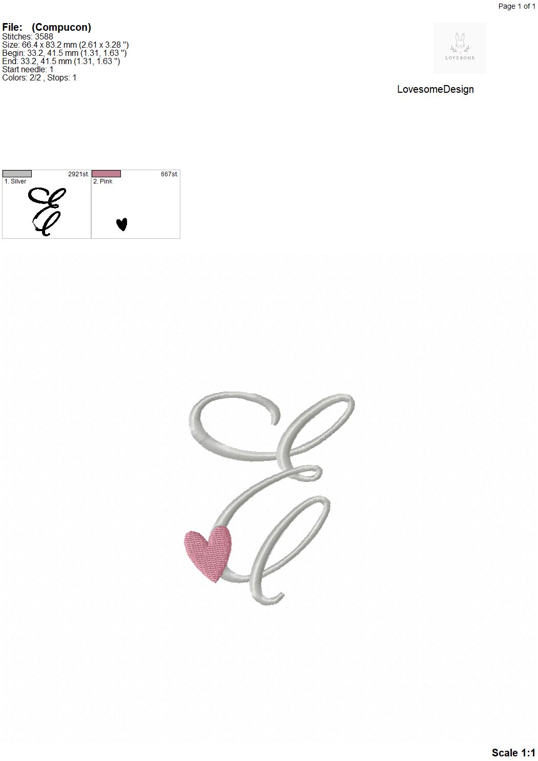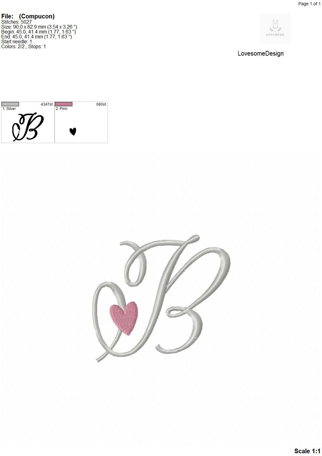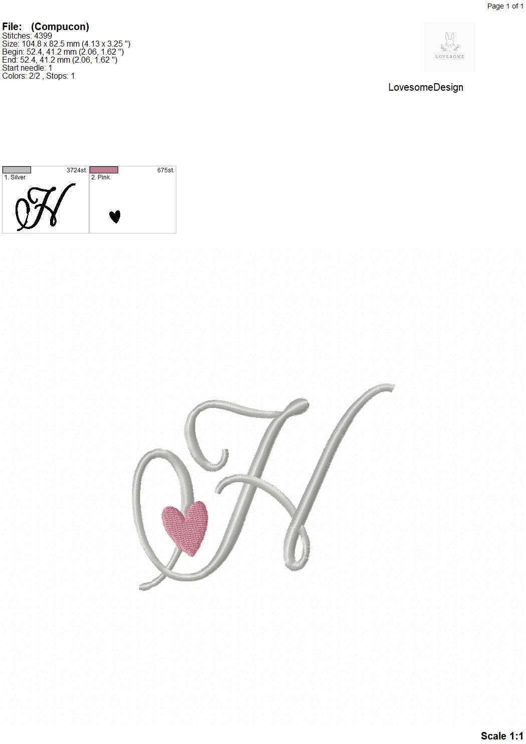 This listing features a machine embroidery font set which includes embroidery files of 26 uppercase cursive calligraphy letters with heart design in 3.5inch size. (For the whole set, pls see the listing images.)