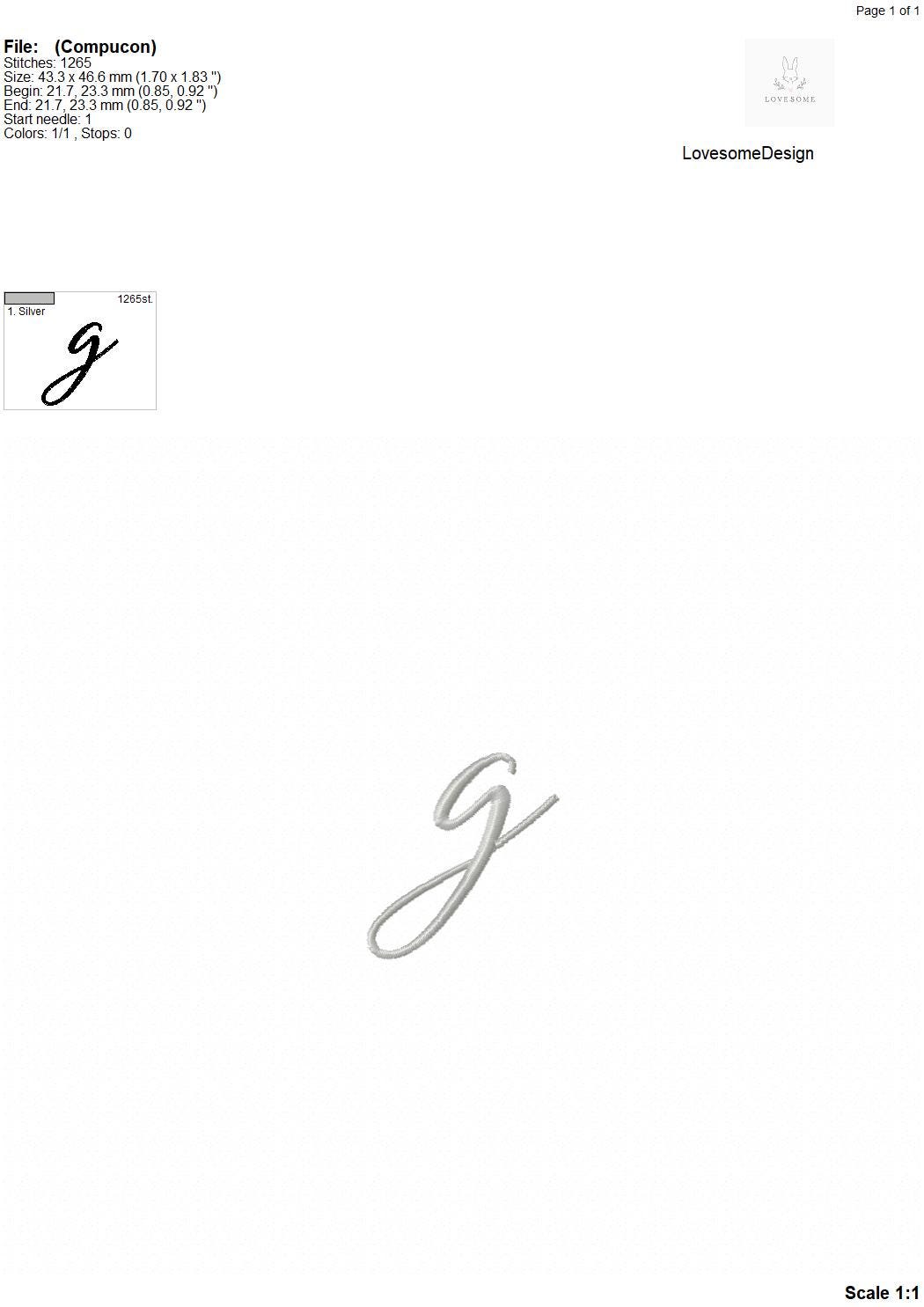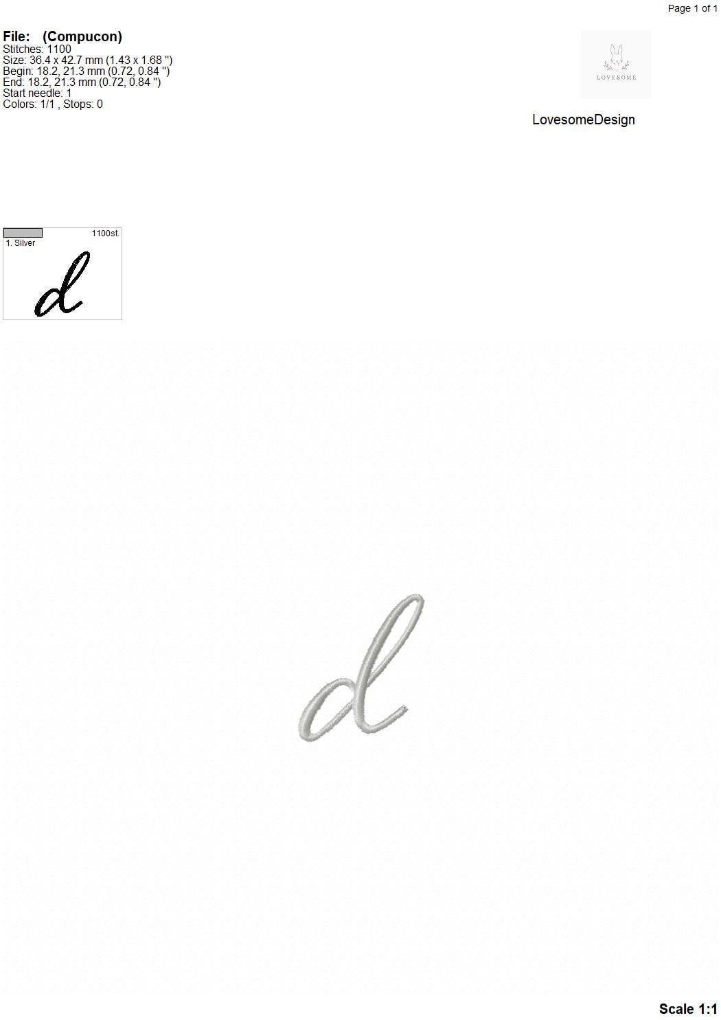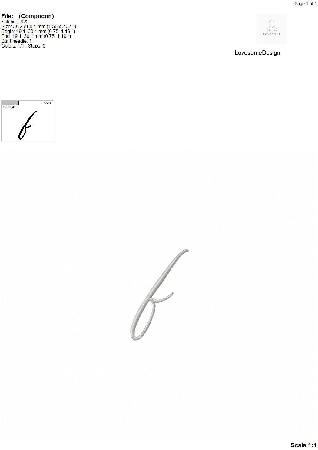 This listing features a machine embroidery font set which includes embroidery files of 26 lowercase cursive calligraphy letters and a cute heart design in appr. 2.5inch size. (For the whole set, pls see the listing images.)