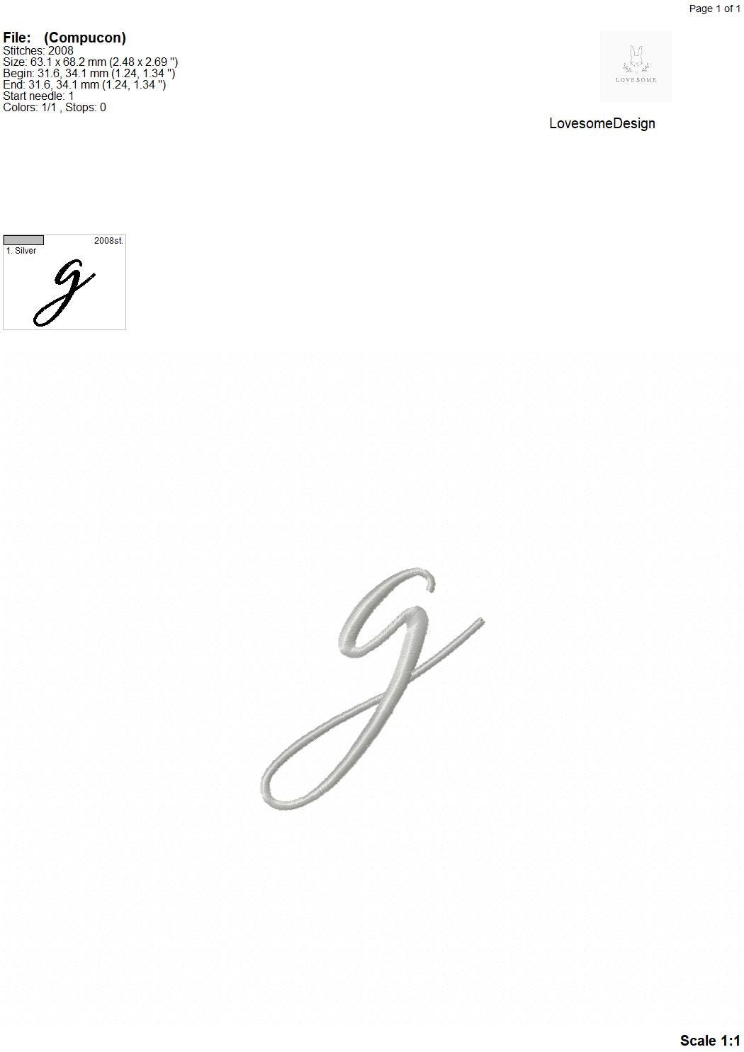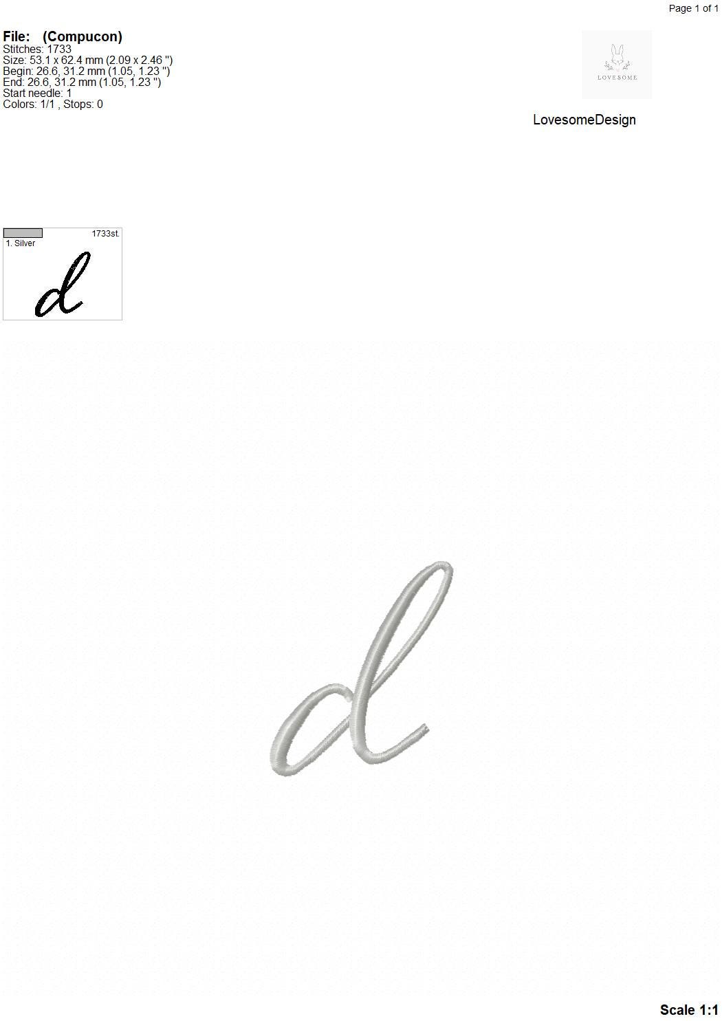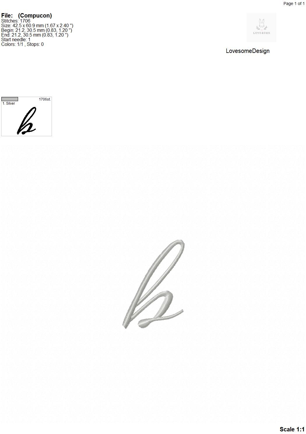 This listing features a machine embroidery font set which includes embroidery files of 26 lowercase cursive calligraphy letters and a cute heart design in appr. 3.5inch size. (For the whole set, pls see the listing images.)