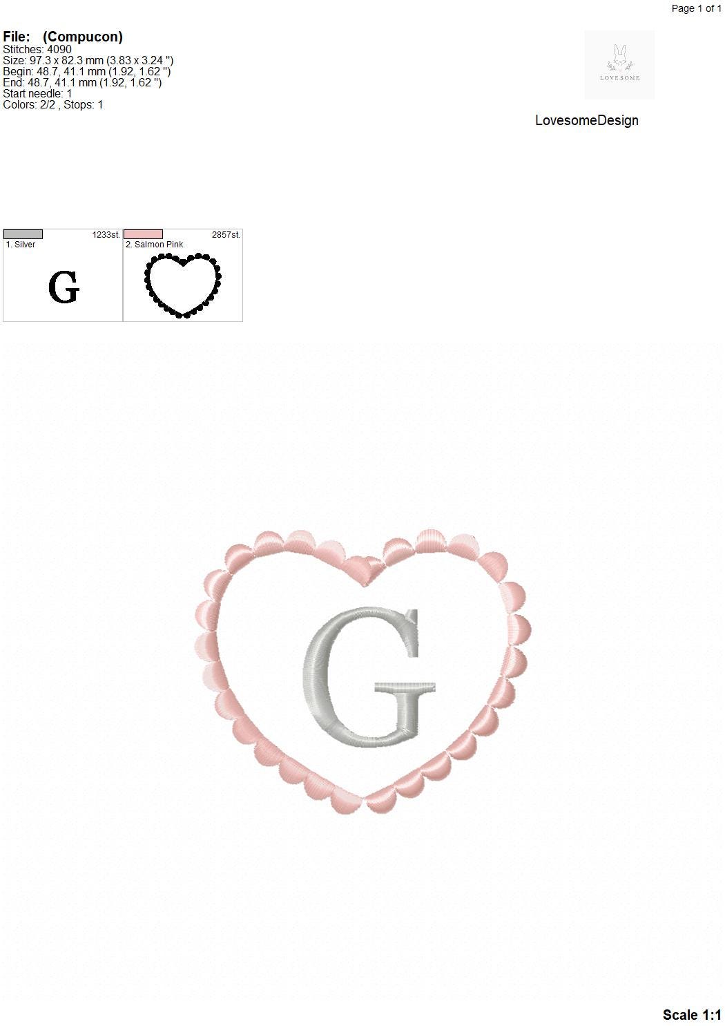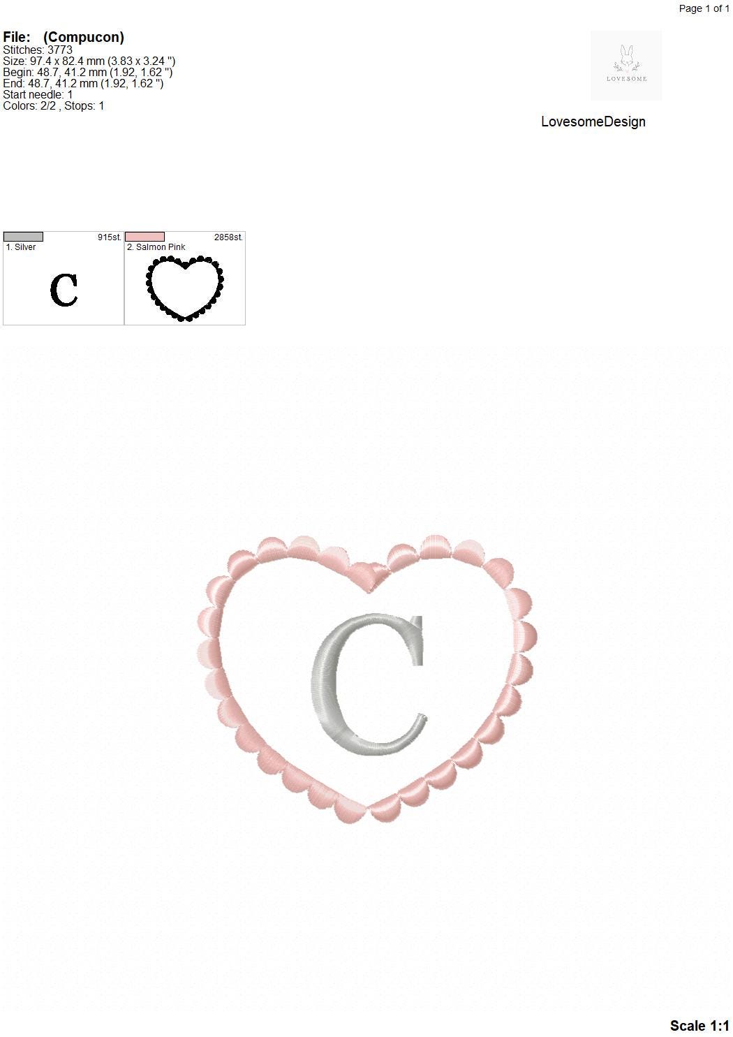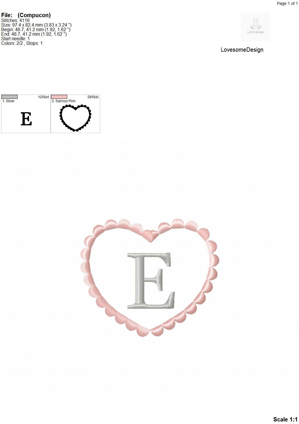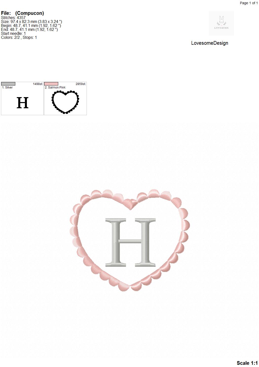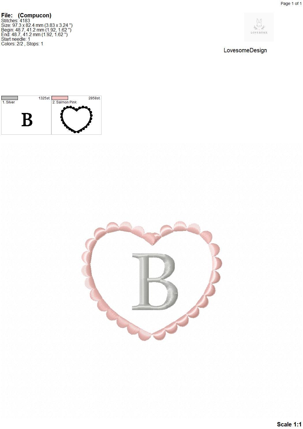 This listing features a machine embroidery font set which includes embroidery files of 26 uppercase serif letters in a beautiful scalloped heart design in 4inch size. (For the whole set, pls see the listing images.)