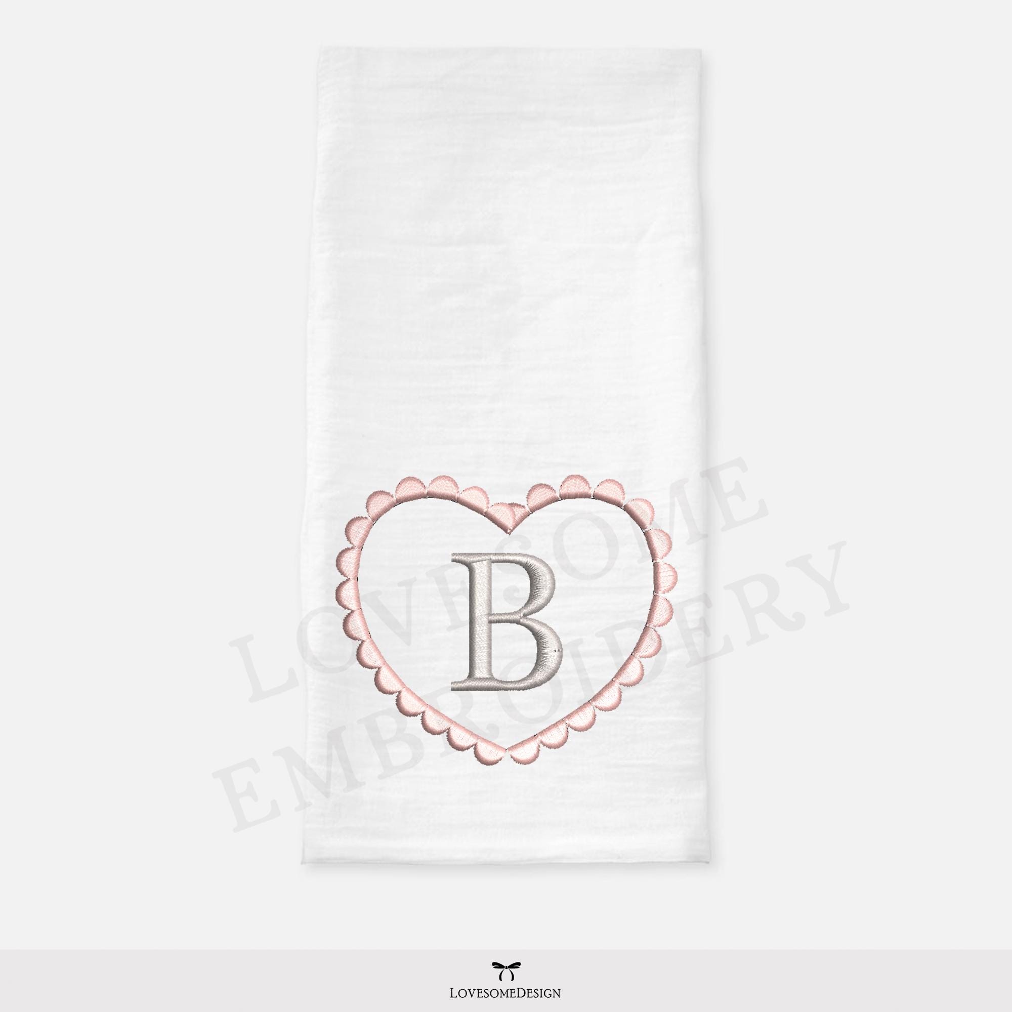 Scalloped Heart Monogram Font 4inch A-Z Valentines Day Wedding Serif Font Machine Embroidery Font Digital Download | Lovesome Design