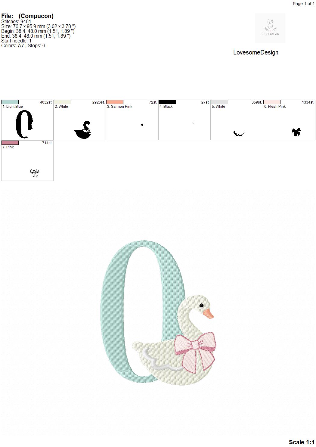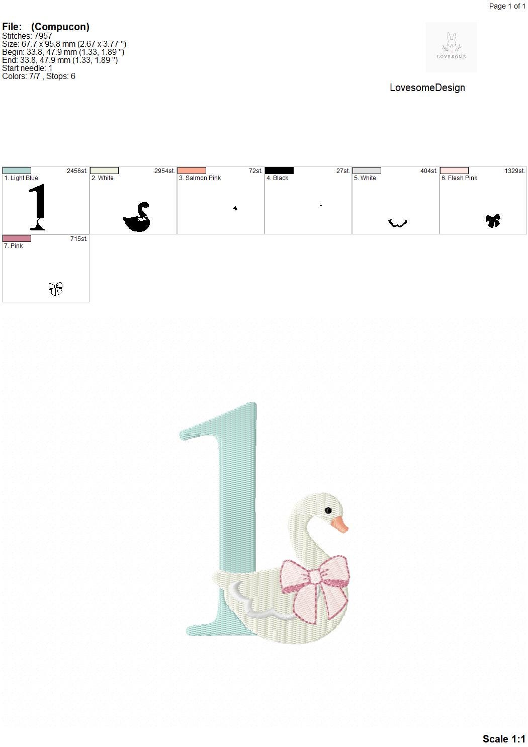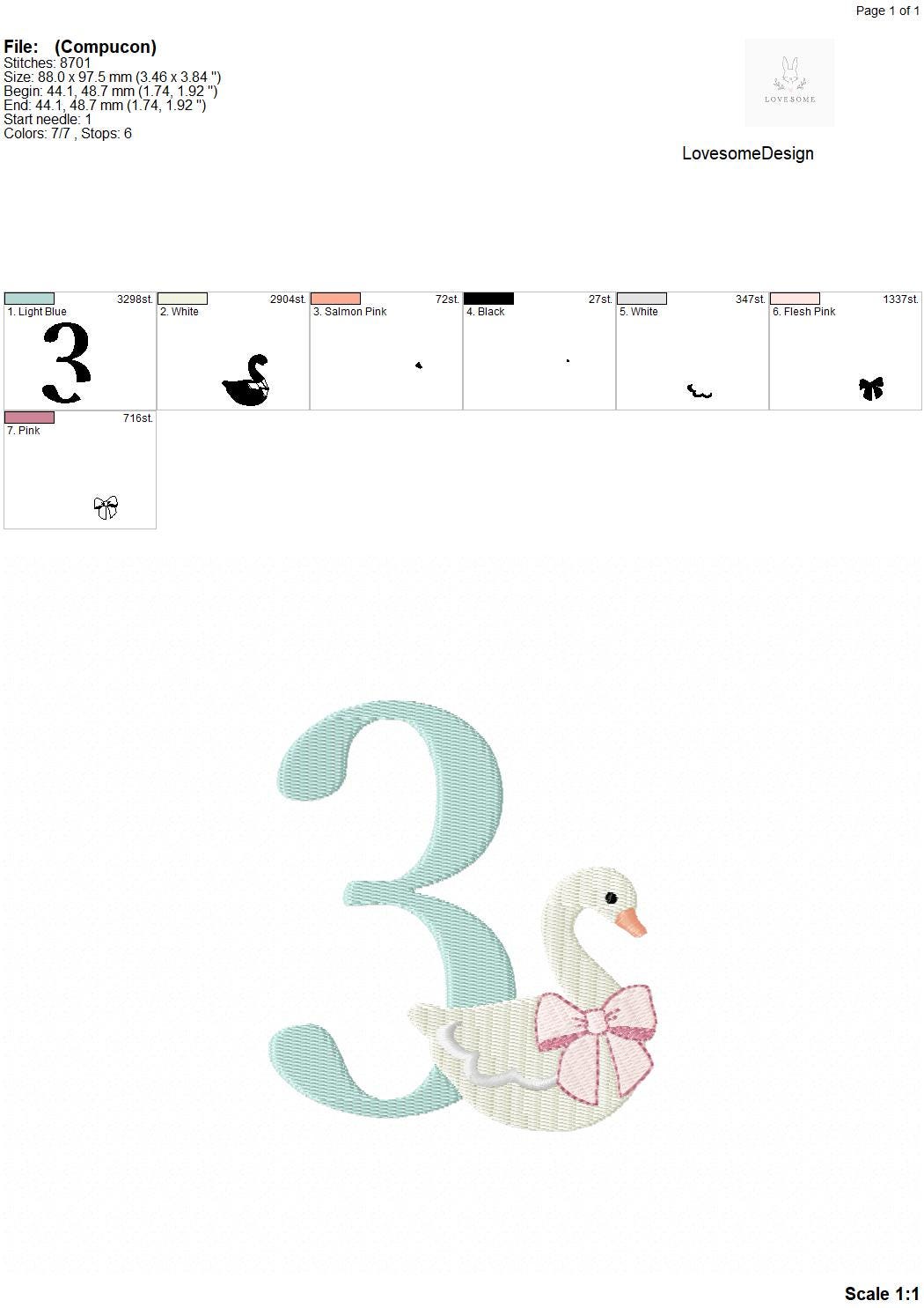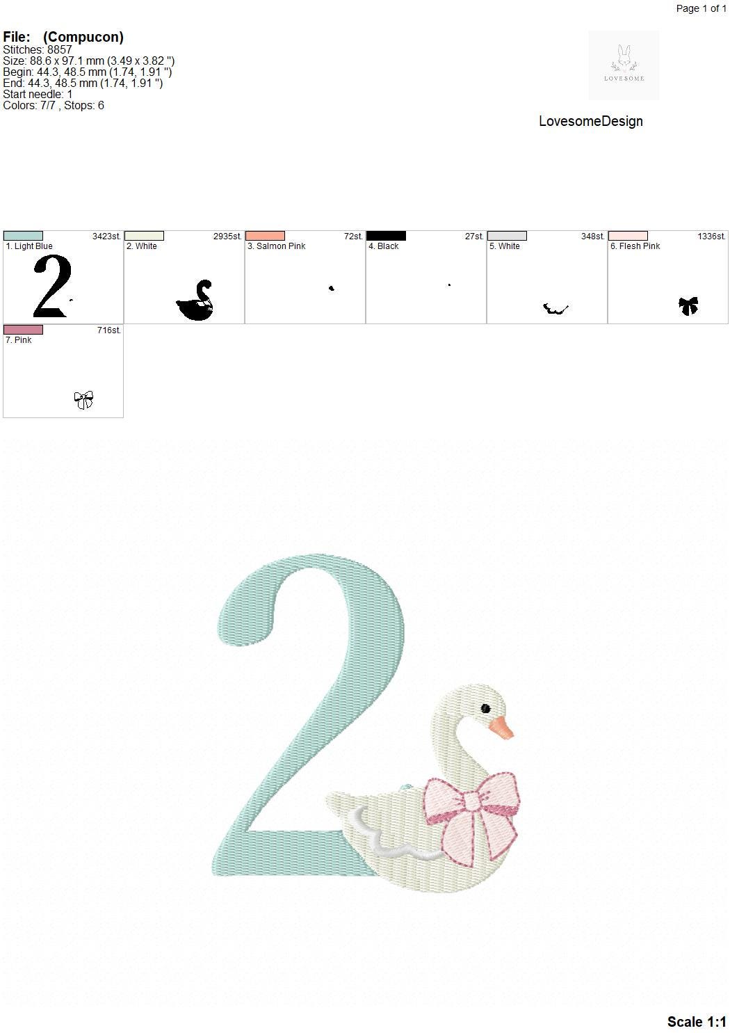 This listing features a machine embroidery numbers set which includes embroidery files of ten numbers (0-9) with swan with a bow design in one size for 4x4 hoops for machine embroidery. (For the whole set, pls see the listing images.)